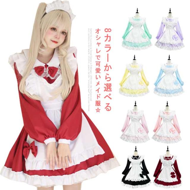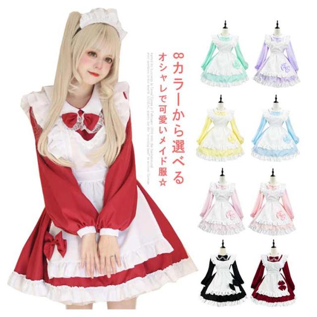 メイド服 コスプレ 8色 メイド こすぷれ ハロウィン ゴスロリ風 フリル リボン メイドコスチューム 可愛い アリス風 仮装 女装 ハロウィンコスプレ コスプレ衣装 大きいサイズ 大人 レディース メンズ メイドカフェー