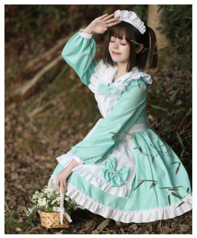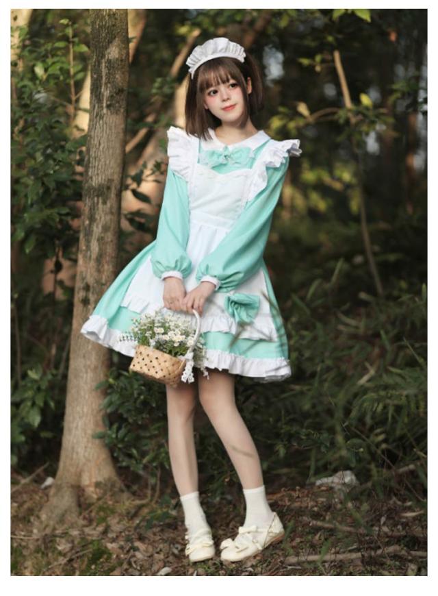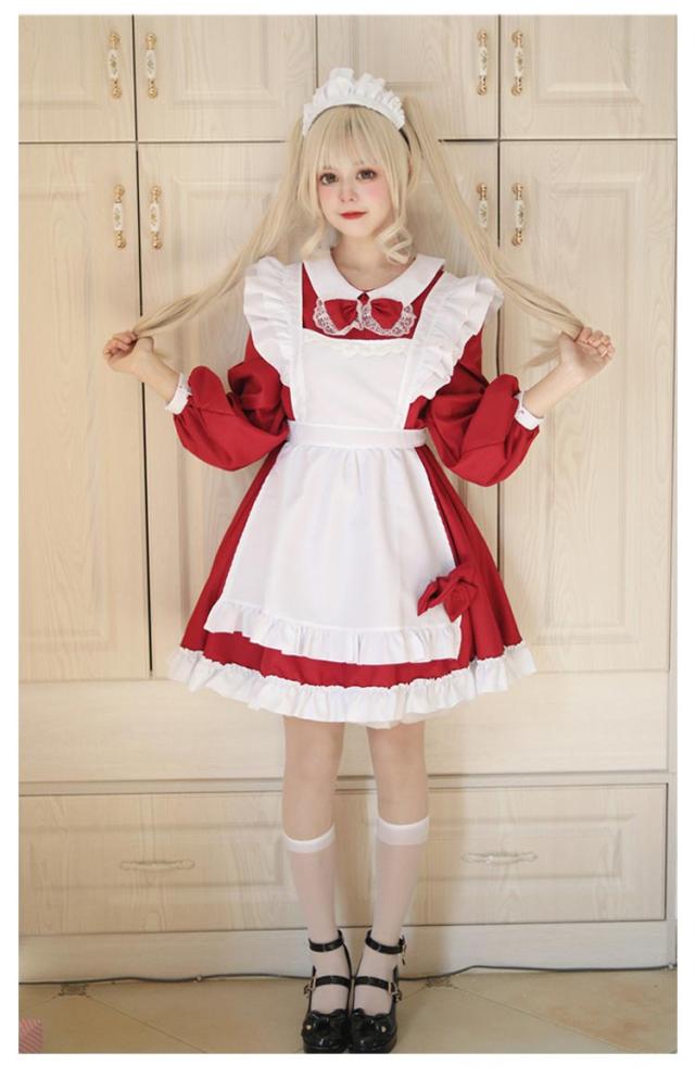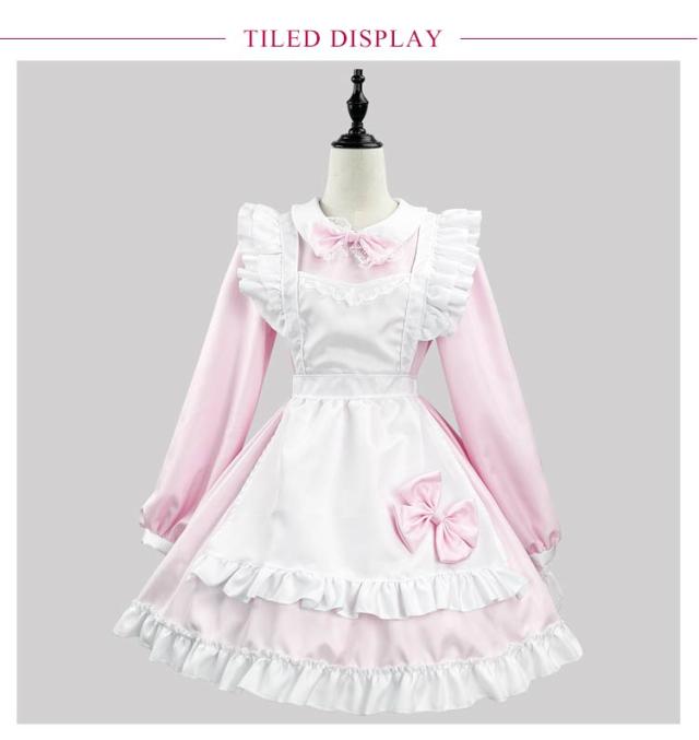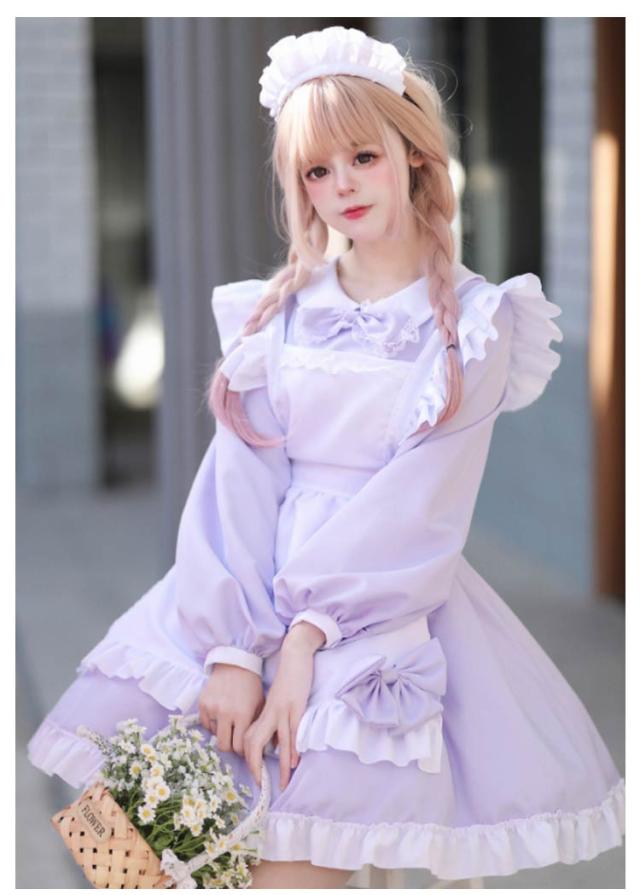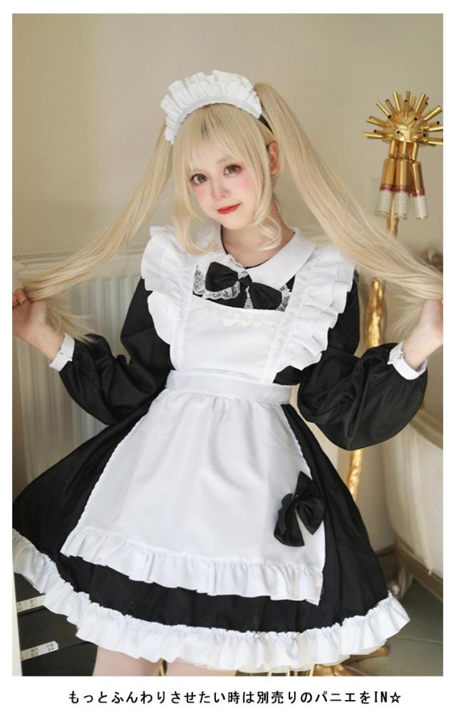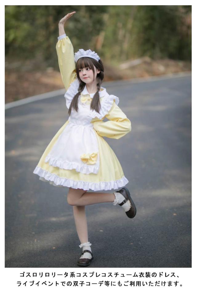 | 8カラーから選べるオシャレで可愛いメイド服☆ エプロンはフリルで可愛くリボン結びであまい仕上がりに☆ Aラインに広がるスカートは体のラインを美しく見せてくれます☆ もっとふんわりさせたい時は別売りのパニエをIN☆ ゴスロリロリータ系コスプレコスチューム衣装のドレス、ライブイベントでの双子コーデ等にもご利用いただけます。 | |