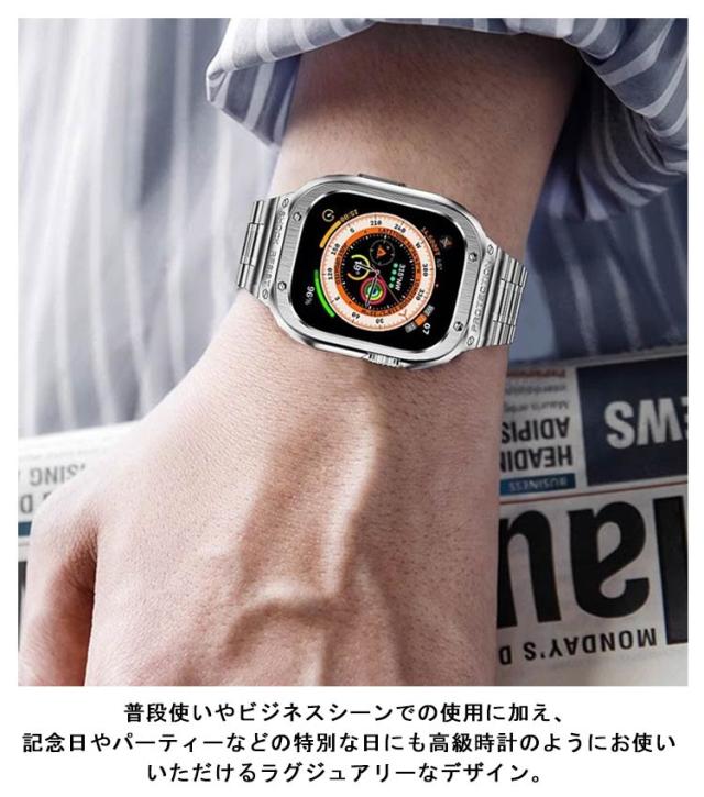 アップルウォッチ カバー バンド 高級 メンズ ステンレス 44mm 45mm 49mmシリーズ 8 7 6 5 4 SE Ultra apple watch 交換 腕時計 おしゃれ applewatch
