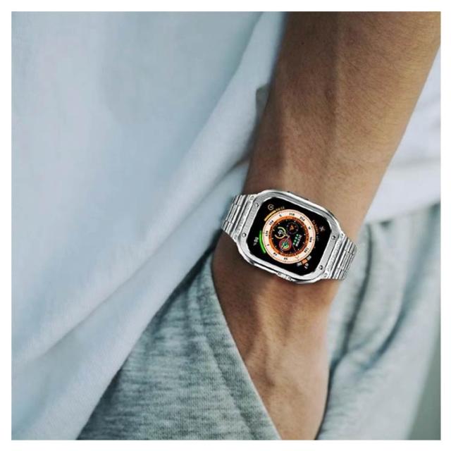 | アップルウォッチのステンレスケースバンドです! 無機質な印象のアップルウォッチも、こちらのバンド、ケースを装着するだけで上品で高級感が溢れる全く違う表情に。 普段使いやビジネスシーンでの使用に加え、記念日やパーティーなどの特別な日にも高級時計のようにお使いいただけるラグジュアリーなデザイン。 サイズは44mm、45mm、49mmの3種類をご用意。Series 4、5、6、7、8、SE、Ultraに対応可能。 あなたのアップルウォッチをワンランク上に。 アップルウォッチをケースにはめた後、ネジで留めるだけの簡単装着です。・誤作動を起こす可能性があるため、必ずアップルウォッチの電源をOFFにしてから、ケースに装着してください。 彼氏やご家族、ご友人へのプレゼントやギフトにも大変お勧めな商品です。 | |