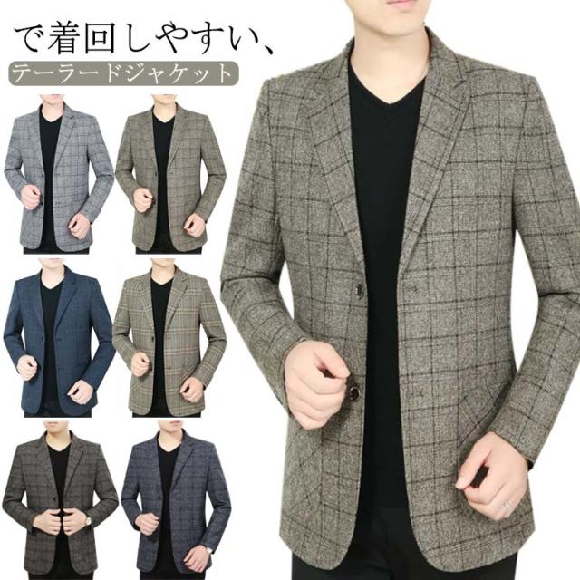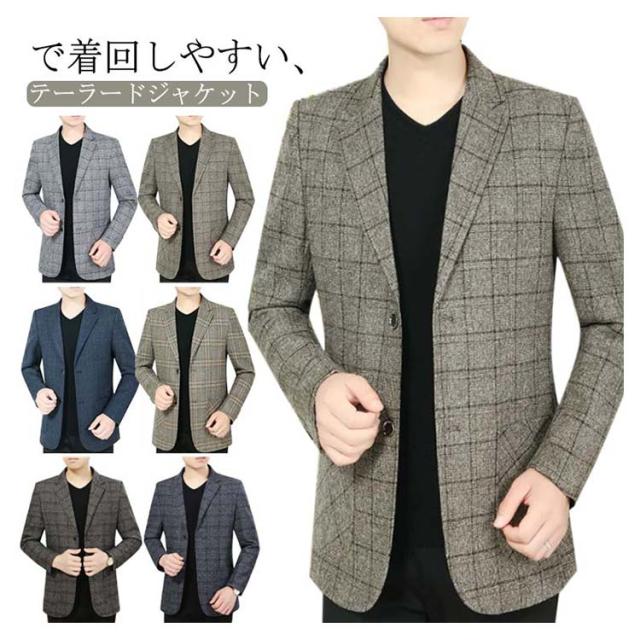 テーラードジャケット メンズ ジャケット カジュアルスーツ フォーマル チェック スーツ 上着 アウター 長袖 オシャレ フォーマル きれいめ ブレザー ビジネス ビジカジ テーラード 秋 春 結婚式 上品 大きいサイズ スリム 通勤 発表会 夏 春 秋冬 父の日 送料無料