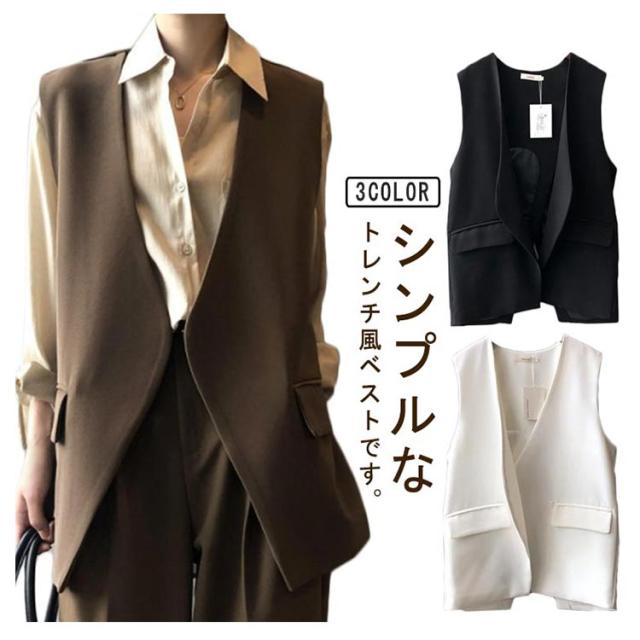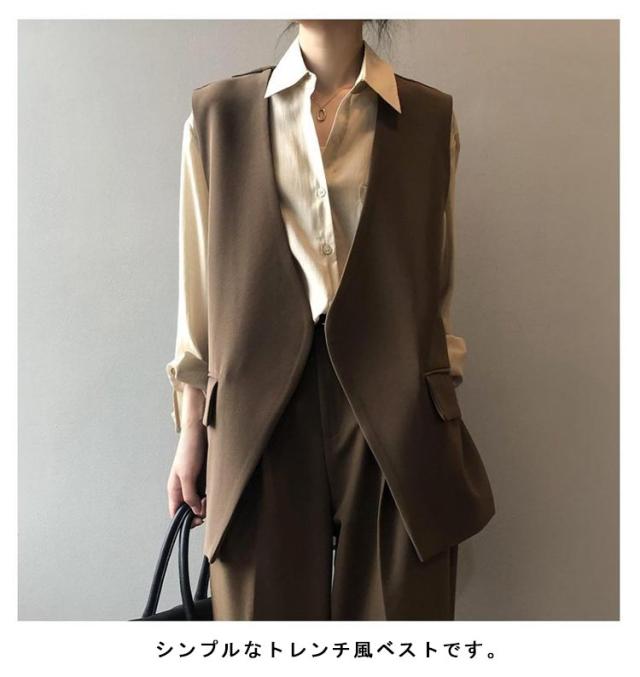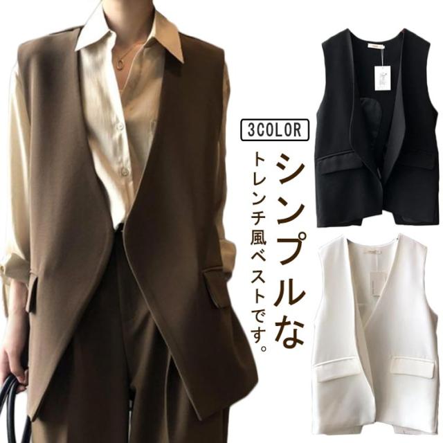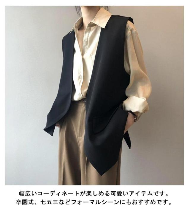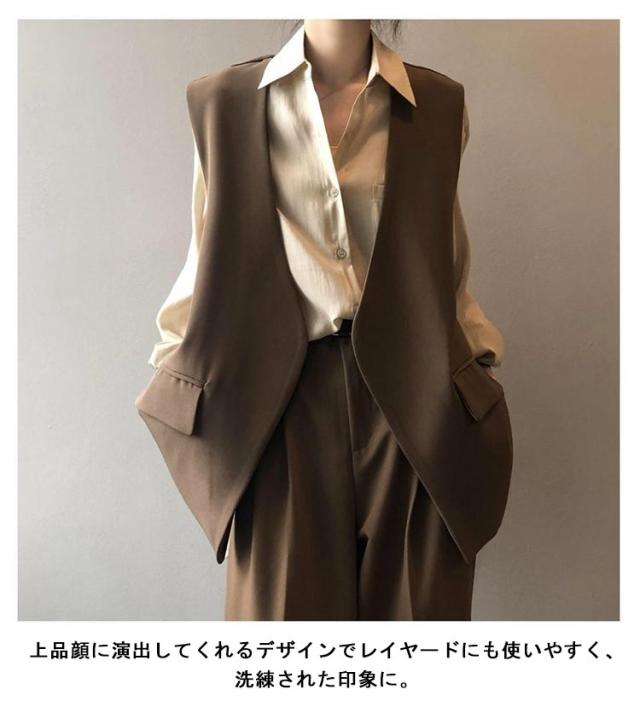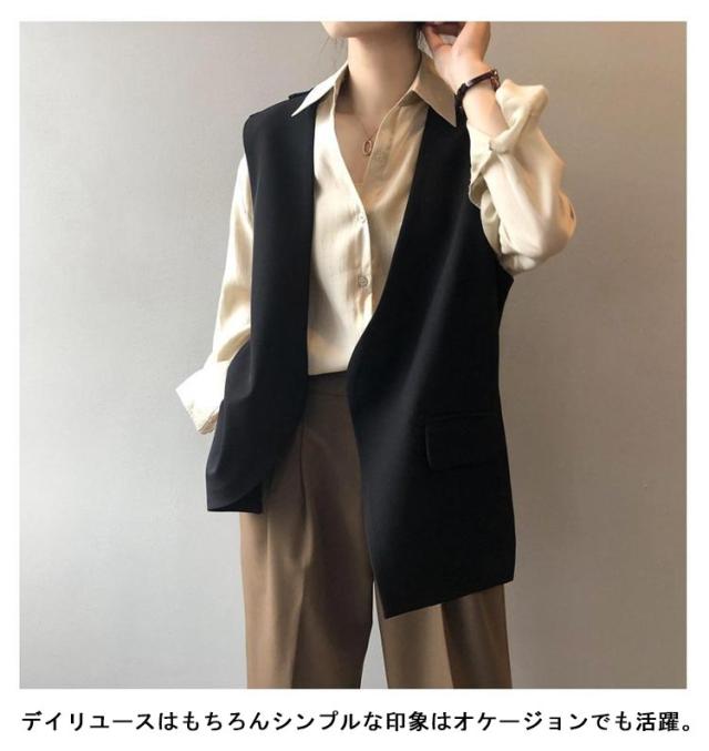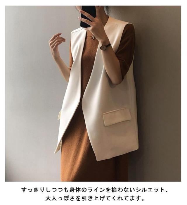 バックスリット!ベスト レディース Vネック ロングジレ ロングベスト 羽織り ノースリーブ テーラードジャケット ジレ 春夏 秋 大きいサイズ ゆったり 大人 OL 通勤 20代 30代 40代 S M L XL 2XL 3XL