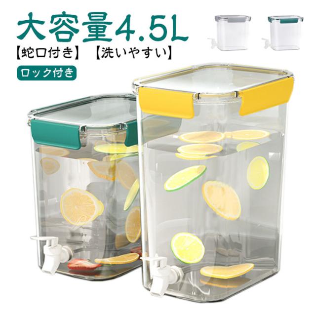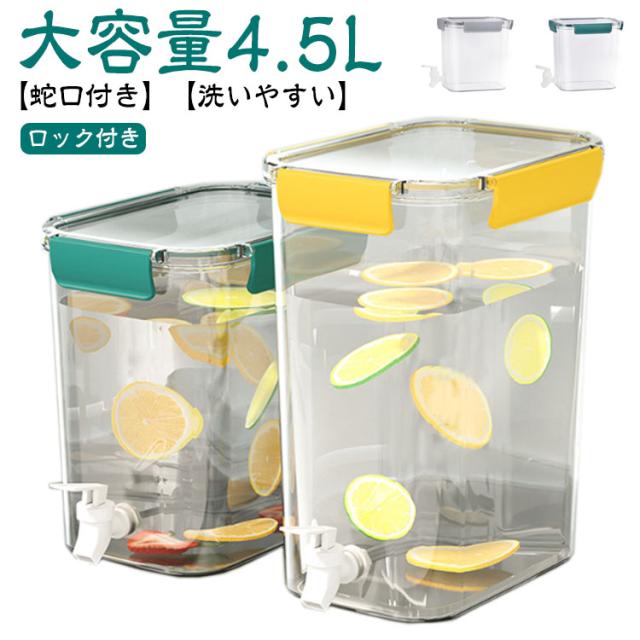 冷水ポット 4.5L 麦茶ポット 冷水筒 ウォーターボトル お茶ポット ピッチャー 横置き 大容量 4.5リットル 洗いやすい ロック付き お茶ボトル プラスチック ウォーターサーバー 冷蔵庫 広口 お茶 ドリンク おしゃれ 北欧 洗いやすい ボトル ジャグ 蛇口付き 飲料水