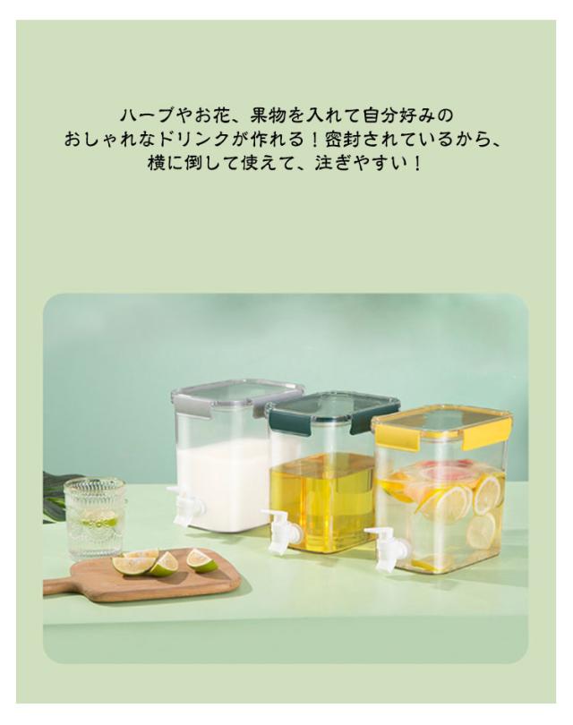 | 【大容量4.5L】【蛇口付き】【洗いやすい】 蛇口があるので、ビールやジュースなどの飲料水を注いで、そして冷蔵庫に入れたら、いつも冷たい飲み物を飲ませます! たっぷり入るから大人数のご家庭やパーティーにも最適!冷蔵庫に入れてそのまま注げるから取り出し不要! 口が広いから、お手入れらくらく♪角がないので隅まで洗いやすく、広口で奥まで手が届きやすいです。 良い品質の素材を採用して作られたこの冷水筒は丈夫で地面に落ちても割れない、そして長く使えて耐久性も優れています! ハーブやお花、果物を入れて自分好みのおしゃれなドリンクが作れる!密封されているから、横に倒して使えて、注ぎやすい! | |