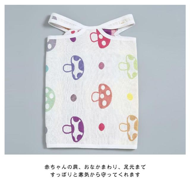 | 洗うたび、肌になじみながらふっくらやわらかに。心地よさが増していきます。 素肌にやさしいガーゼ素材。通気性と吸水性がよく、むれずに快適。 夏場はしっかりと汗を吸収し、冬場は暖かさを逃さず、一年を通じて使えます。 赤ちゃんの肩、おなかまわり、足元まですっぽりと寒気から守ってくれます。 | |