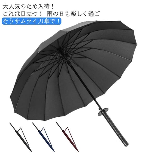 傘 和傘 刀傘 サムライ傘 刀型雨傘 忍者 侍 傘 メンズ レディース 長傘 16本骨 武士道傘 高強度 ジャンプ傘 ファンタジー ゲーム 背中に掛けられる 大判傘 超撥水 大きい 雨傘 丈夫 耐風傘 軽量 晴雨兼用 梅雨対策 台風対策 収納カバー付き 和風 送料無料