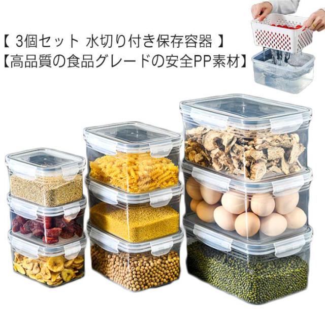 3個セット 保存容器 ざる ザル 水切り 付き 保存容器 密封キーパー 密閉ボックス 水洗い ボウル カゴ 食材 野菜 フルーツ 保存 おしゃれ 大容量 大きい 密封キーパー 密閉ボックス 食品保存容器 食品 保存 キッチン用品 大蒜 玉ねぎ 生姜 唐辛子 玉米の粒 収納ケース