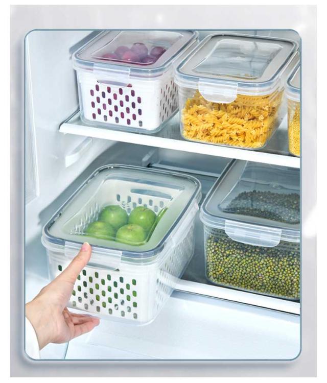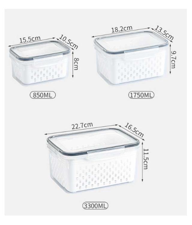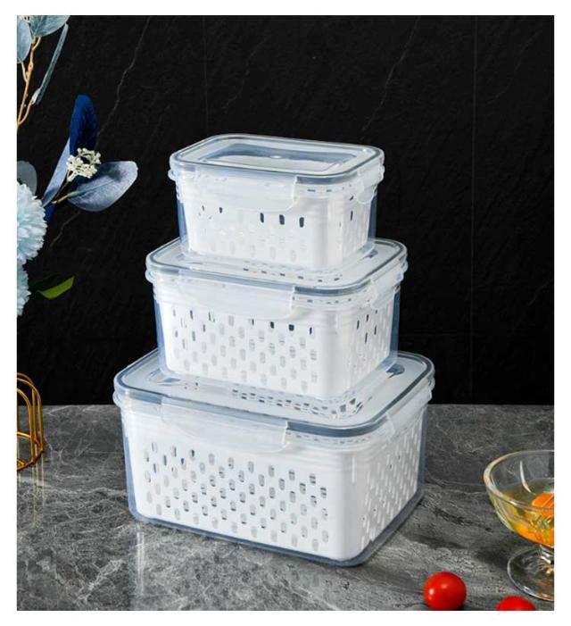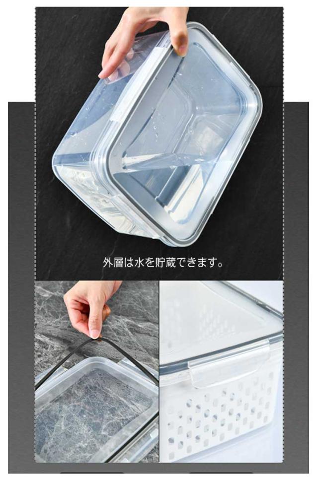 | 【 3個セット 水切り付き保存容器 】 【高品質の食品グレードの安全PP素材】 水切り付き★ 外層は水を貯蔵できます。 蓋も付属しています。 積み重ねて使用できます。 透明度が高いです。 | |