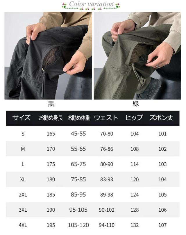 カーゴパンツ メンズ 防水 ミリタリーパンツ カジュアルパンツ ワークパンツ サイドファスナー カジュアル シンプル 大きいサイズ 春 秋 冬 体型カバー かっこいい アメカジ S M L XL 2XL 3XL 4XL
