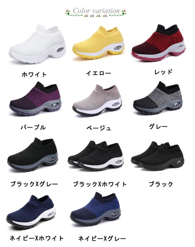 | 22.5-27cm!毎日履きたい、履きやすい紐なしスニーカー! エアクッション付きなスニーカーはクッション性に優れ、踏み込む際の衝撃を吸収し、長時間のウォーキングや立ち仕事での疲労を大幅に軽減します。 メッシュアッパー、通気性が抜群で、高い柔軟性と軽量設計で、長時間履いても疲れにくくなります。 約5cm厚底のデザインなので、足を長めて見えさせる効果があります。 靴底には特殊な加工を施しており、滑りにくて耐磨耗性が抜群。 普段履き、ウォーキング、ランニング、ジョギング、トレーニング、スポーツ・運動時、ジム、通学、散歩、アウトドア活動などいろいろな運動に適用します。 | |