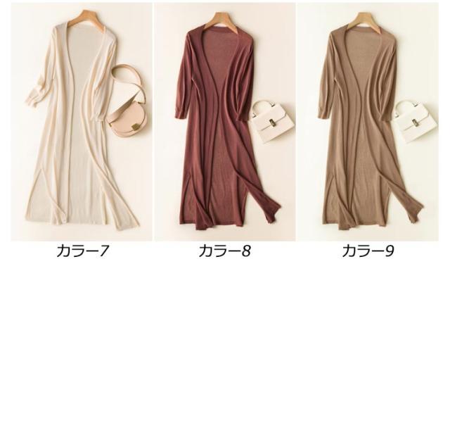 送料無料 カーディガン ロング レディース UVケアサマーニットカーディガン 羽織り カーデ 羽織 ロングカーデ 長袖 ロング丈 薄手 ニット ゆったり 体型カバー 無地 涼しい エレガント 上品 トップス 透け感 サイドスリット おしゃれ