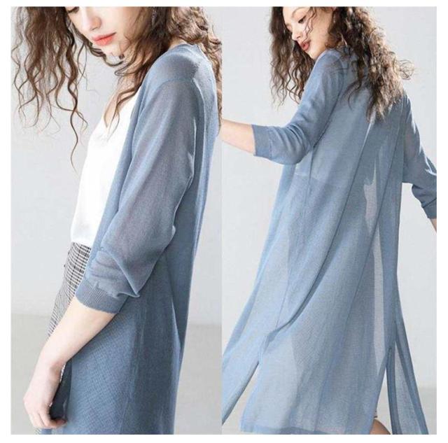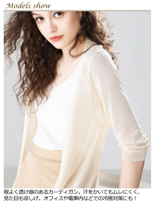 | 長めの丈感で女性らしく羽織れるサマーニットカーディガン。 UVケア仕様で、日差しから肌を守ってくれるのも嬉しいポイント。 シースルーニットで、透けすぎないので適度な肌見せが叶います。 ひんやりとした肌触りの接触冷感素材で汗ばむ季節にもすごしやすくお使いいただけます。 ボタン無しのシンプルデザインで軽やかに すっきり見せてくれます。 パンツにもスカートにも♪ ボトムを選ばない! オフィスや車内の冷房対策やビーチ、アウトドアなど紫外線対策にも、さらっと羽織れてロングシーズン活躍できる。 カラーから夏らしいカラーまで豊富な色展開。 | |