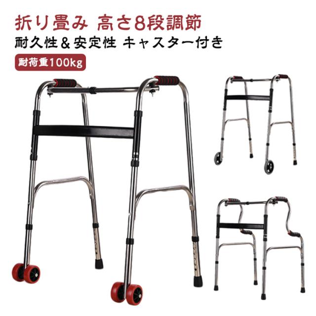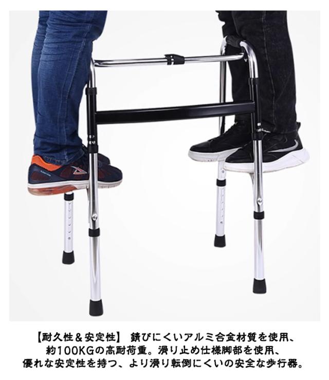 歩行器 折りたたみ 前輪キャスター2個付き 交互歩行器 固定歩行器 固定式歩行器 2way式 シャワーチェア 高齢者 お年寄り 介護用 介護用品 転倒防止 室内室外兼用 老人 障害者用 耐荷重100kg 軽量 アルミ製 高さ8段調節 立ち上がり 手押し車 歩行車 歩行補助 折り畳み