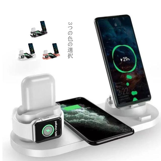 送料無料 ワイヤレス充電器 6in1 充電スタンド apple watch1/2/3/4/5 充電器 充電器 アップルウォッチ 充電器 airpods1/2 pro 充電器 アップルペンシル 充電器