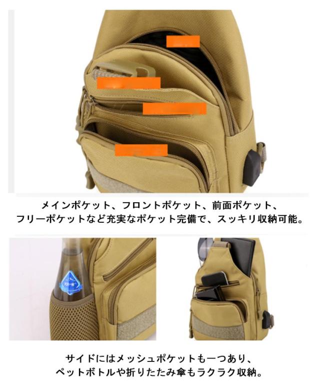 ワンショルダーバッグ ボディバック ミリタリーバック リュック ショルダーバック メンズ 両肩対応 ボディーバッグ 小さめ 小さめ 大容量 軽い 斜めがけ 肩掛けバック 旅行カバン 鞄 20代 30代 40代 50代 60代 USBポート付き