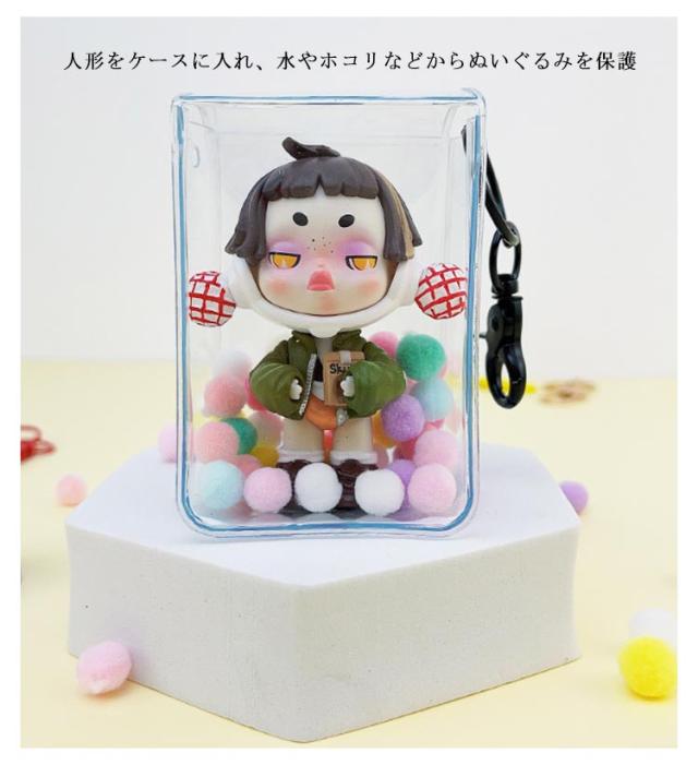 | 【2セット入り】 【セット内容:ポーチ+フック+毛玉】 【2サイズ×6色】 ぬいぐるみ用透明な柔らかいケース(バッグ) 人形をケースに入れ、水やホコリなどからぬいぐるみを保護 | |