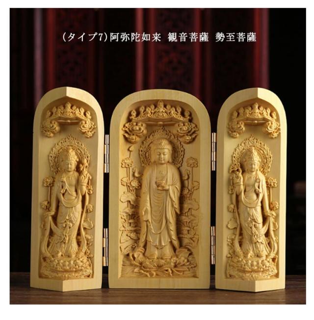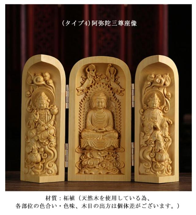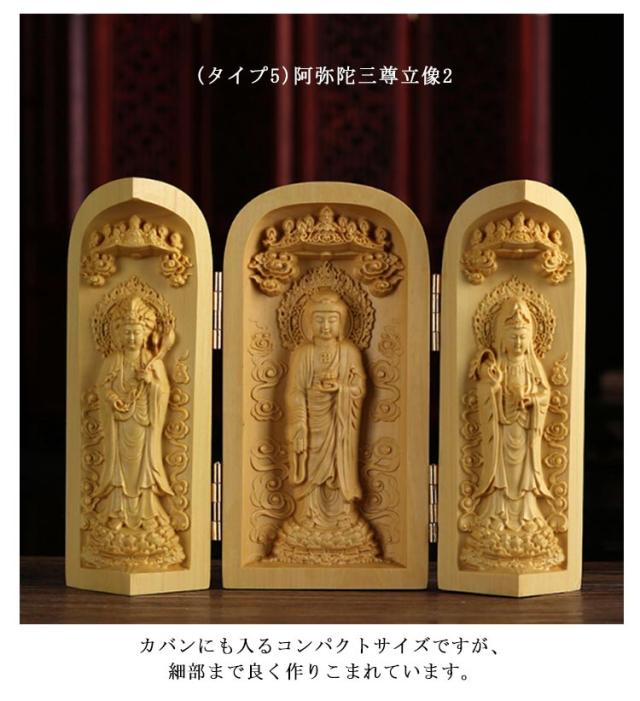 | サイズについての説明 | 高10cm 幅(展開)13cm (タイプ1)千手観音菩薩/武財神/韋駄天 (タイプ2)真言宗三尊:大日如来/弘法大師 不動明王 (タイプ3)釈迦如来 阿弥陀如来 薬師如来 (タイプ4)阿弥陀三尊座像 (タイプ5)阿弥陀三尊立像2 (タイプ6)阿弥陀如来 地蔵菩薩 観音菩薩 (タイプ7)阿弥陀如来 観音菩薩 勢至菩薩 |