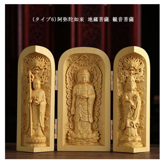 大日如来 不動明王 真言宗三尊 三開仏 木彫仏像 高さ10cm 弘法大師 仏像 彫刻 ツゲ 阿弥陀如来 地蔵菩薩 観音菩薩 お釈迦様 観音 幸運の神 三開仏筒型 阿弥陀三尊像 縁起物 厄除け お守り 守り本尊 仏龕 仏壇 仏箱 枕本尊 柘植ツゲ 【送料無料】