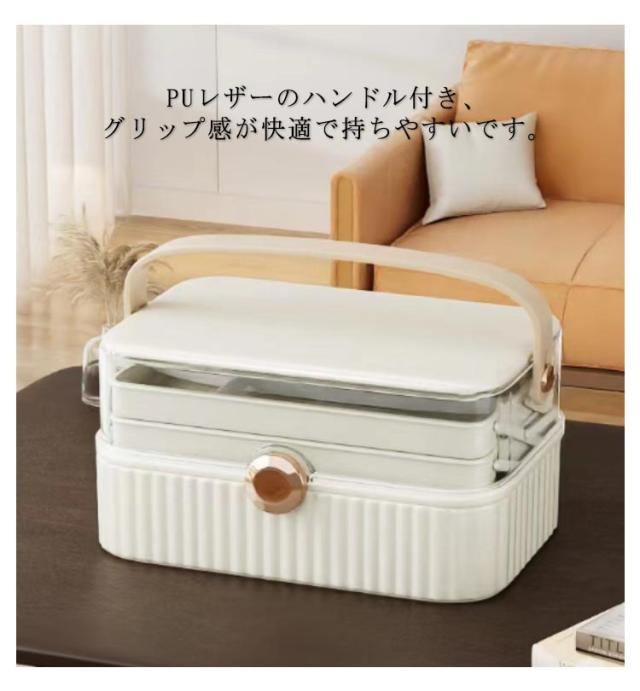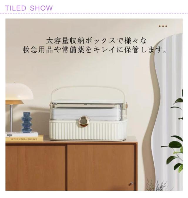 | 開閉しやすい3段大容量薬箱。 大容量収納ボックスで様々な救急用品や常備薬をキレイに保管します。 3段の大容量また仕切り板付き、面倒な積み重ねや、緊急時に薬を見つけるのが難しくなることがもうありません! 上の2層は仕切りがついているので、どこに何があるのかがすぐに見えます。 高品質なプラスチック素材を採用して、防塵・防湿効果があり長くお使いいただけます。 PUレザーのハンドル付き、グリップ感が快適で持ちやすいです。 シンプル・おしゃれなデザインは薬箱だけでなく、様々なニーズに合わせて使えるアイテムです。 | |