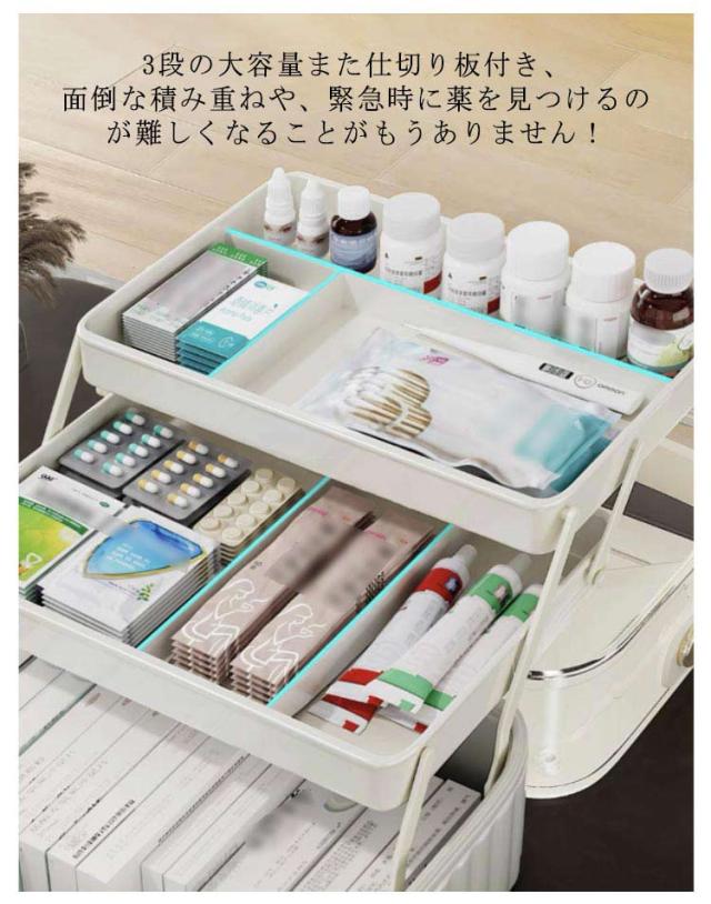 救急箱 おしゃれ 大容量 薬箱 北欧風 シンプル おしゃれ 3段 収納 薬ケース 収納ボックス 仕切り 薬入れ 収納ケース くすり整理箱 たっぷり収納 日用品 丈夫 小物入れ 持ち手付き 家庭用 救急BOX 便利グッズ クリア 緊急応急 応急処置 防災グッズ 道具箱