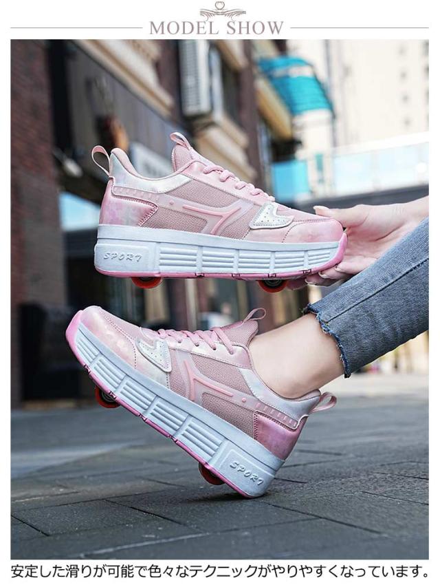 新作 ローラーシューズ ローラースケート キッズ 大人 ローラーシューズ 子供 メンズ 靴 2way 女の子 男の子 男子 女子 スニーカー 二輪 輪収納可能 通気性 ローラースケート ローラースニーカー 学生 カコイイ 送料無料