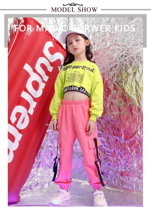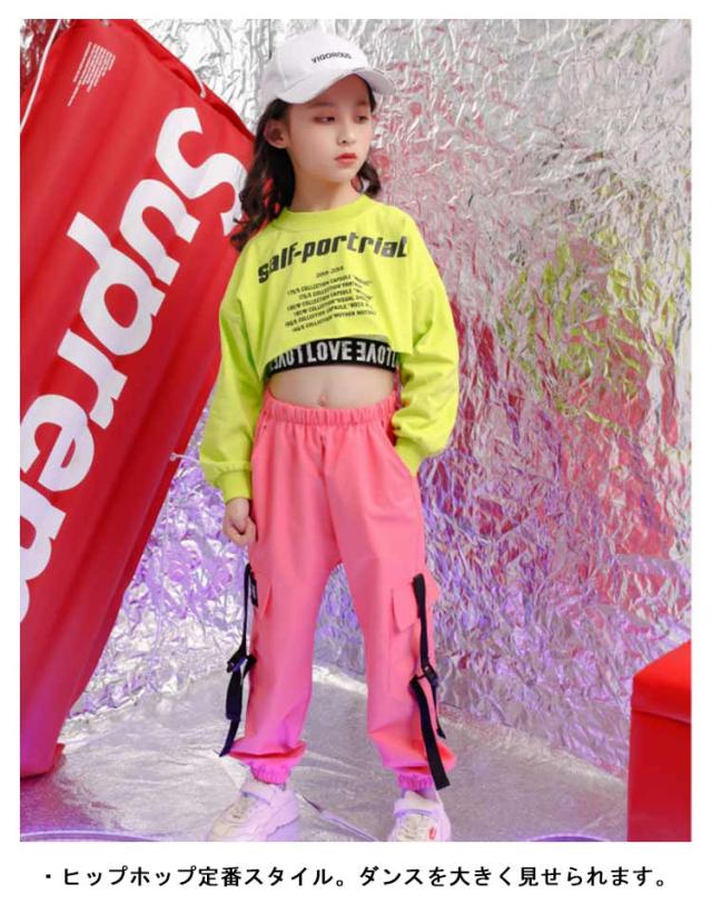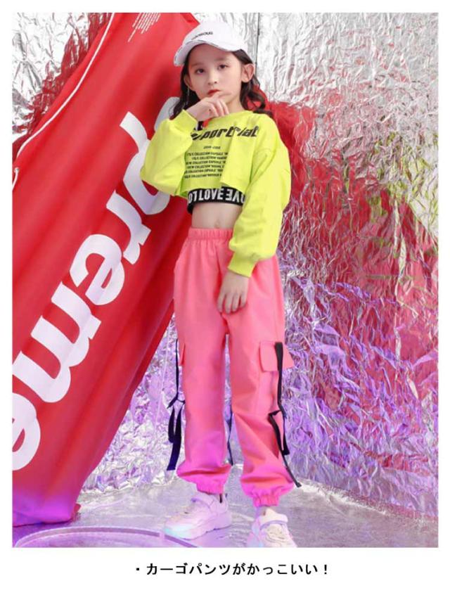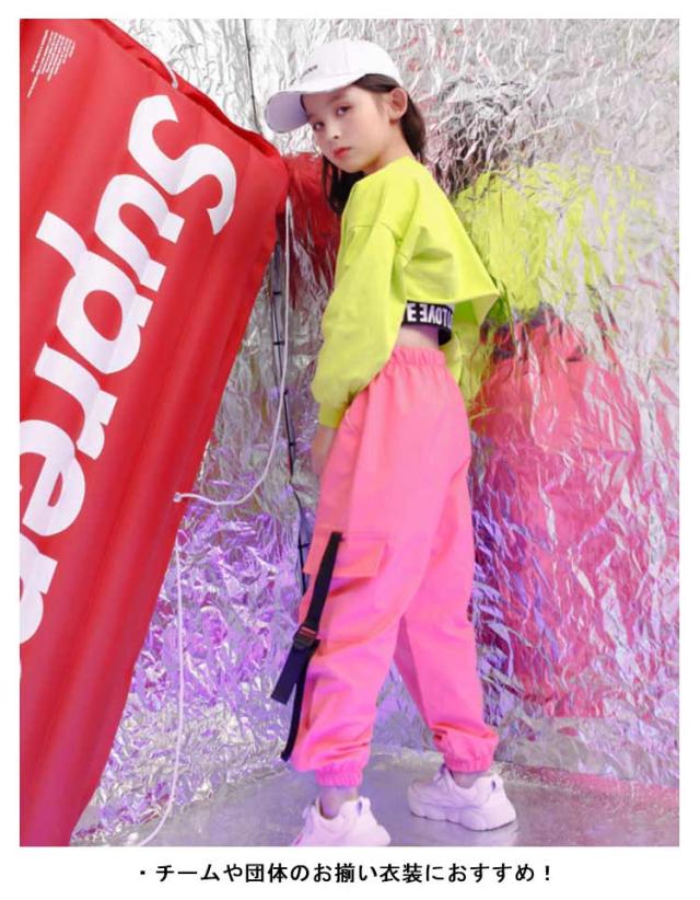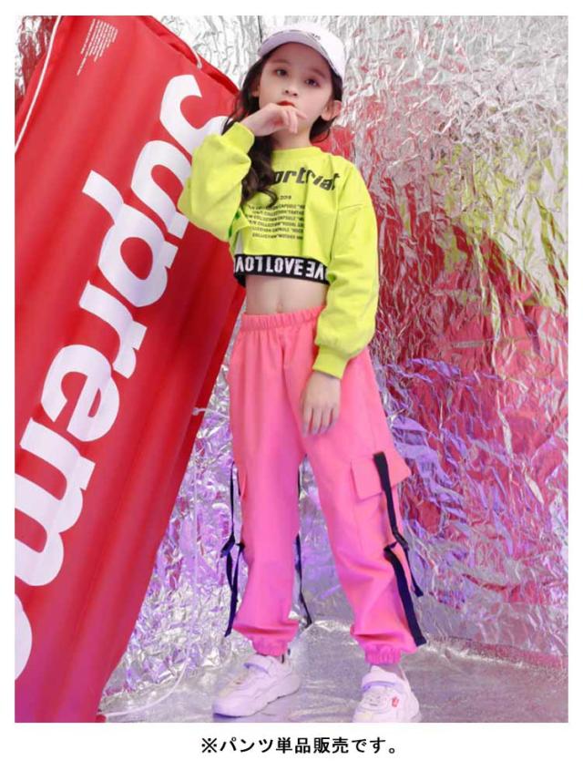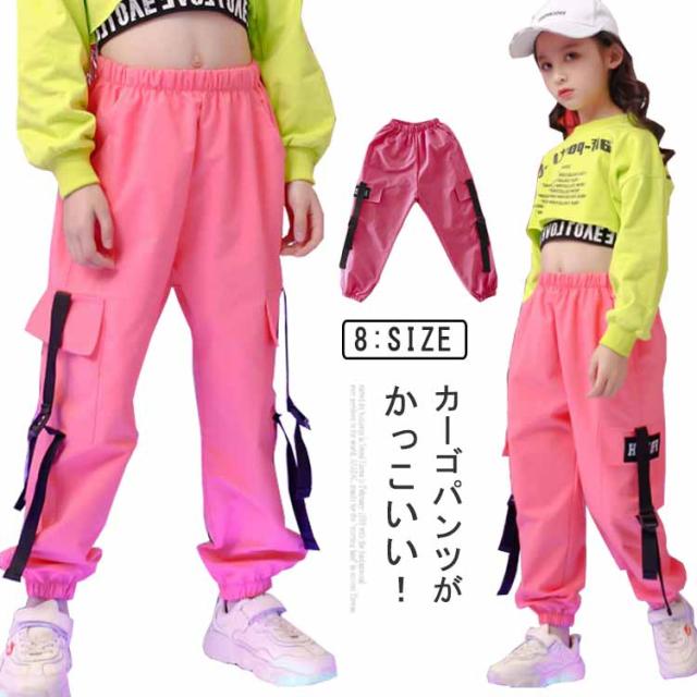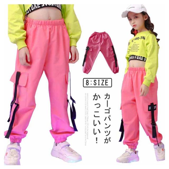 ダンス衣装 パンツ キッズ カーゴパンツ ダンスパンツ ヒップホップ 女の子 ロング丈 ウエストゴム ガールズ ジュニア カラーパンツ 長ズボン ダンサー 学生 子供
