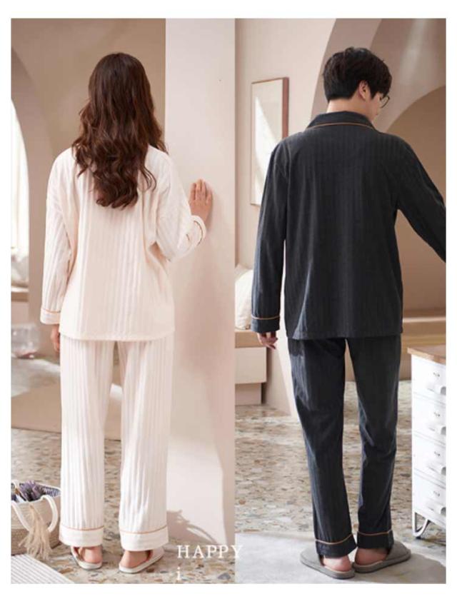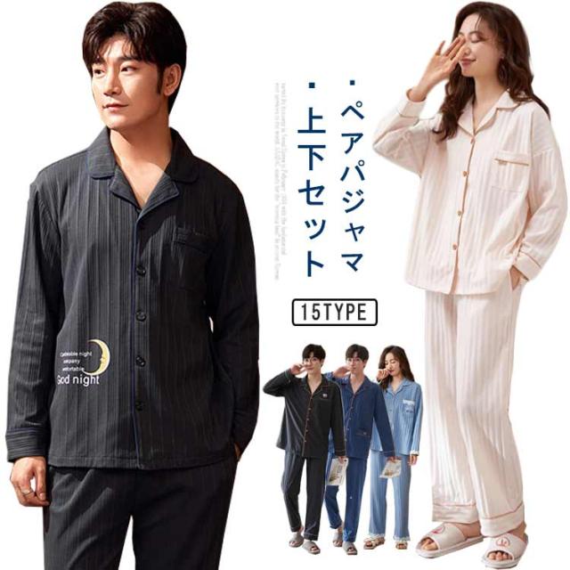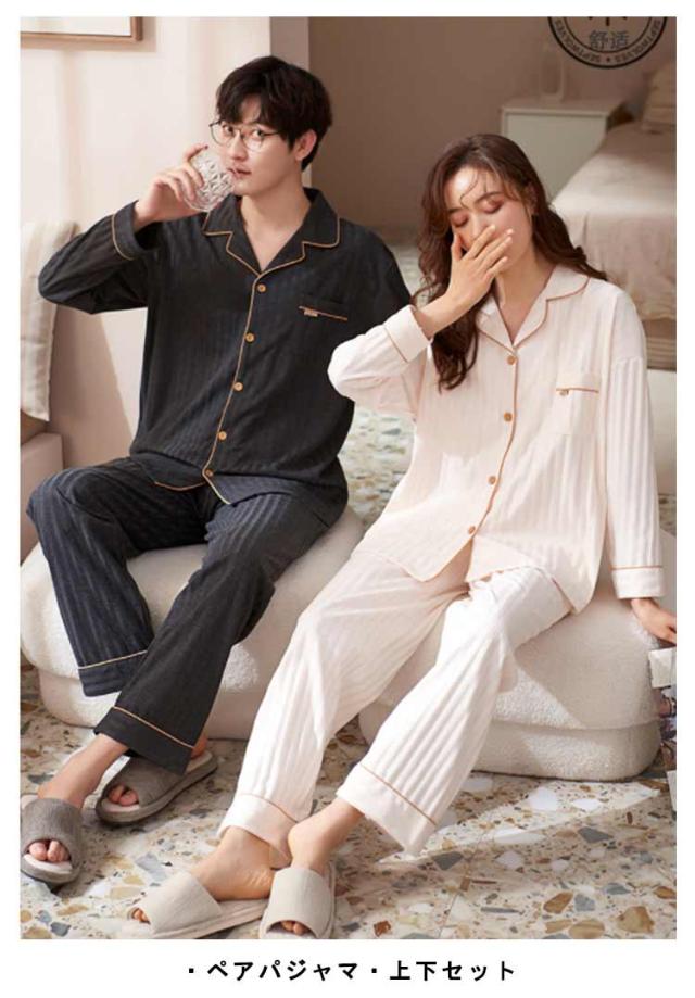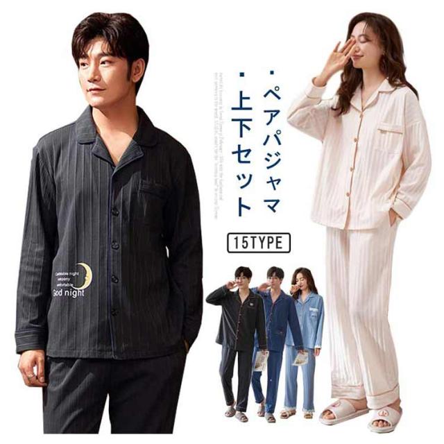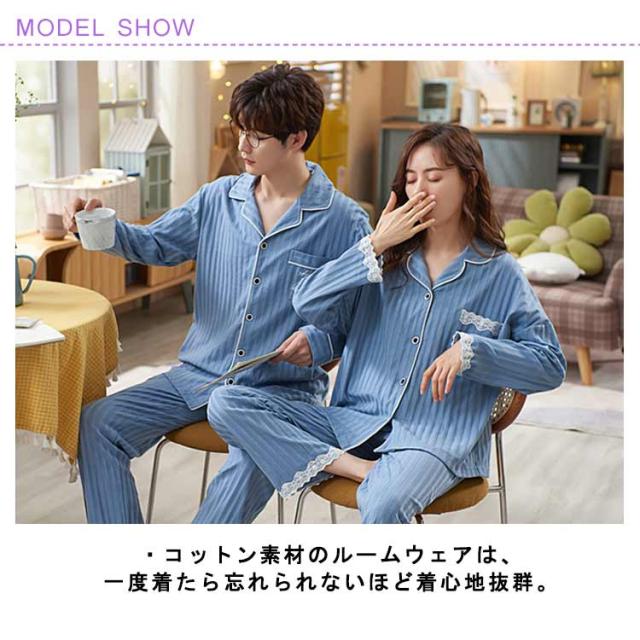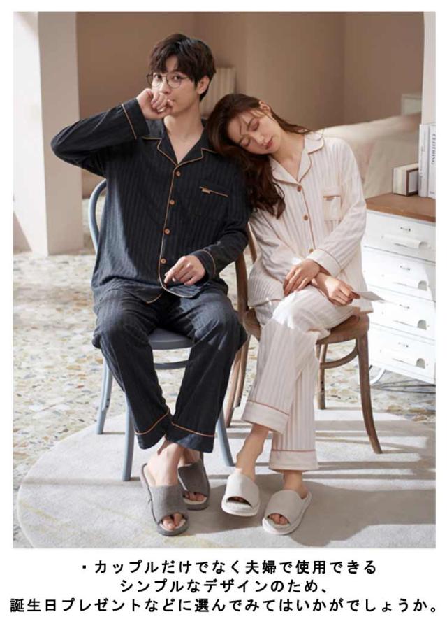 ペア パジャマ 上下 セット セットアップ 綿 コットン メンズ レディース ルームウェア 長袖 長ズボン 部屋着 カップル 寝間着 前開き ナイトウェア リラックスウェア 男性 女性 結婚祝い お祝い 内祝 新居祝 プレゼント