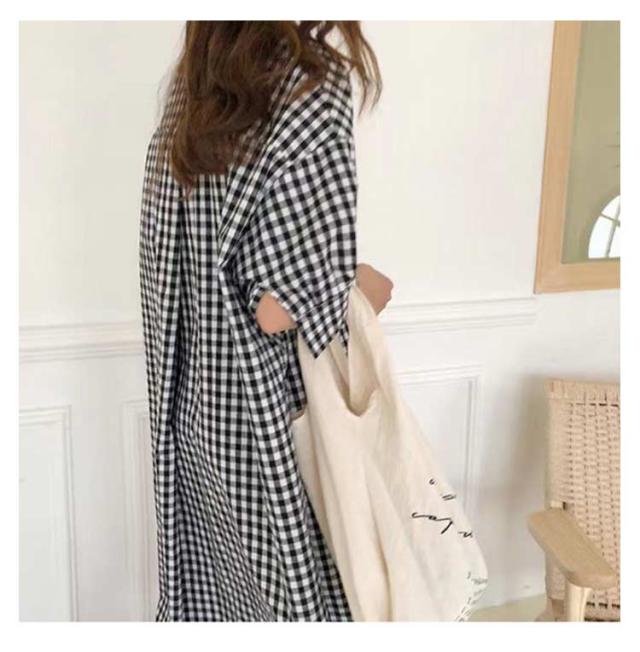 | ネックレスやピアスなど、アクセサリーをつけての着こなしもおすすめ! ゆったりとしたシルエットで体系カバーにも◎ 裾に向かってふんわり広がるスタイルで体系カバー◎ サラサラ通気性ある素材感。 着回し抜群のチェック柄、一枚でも◎。 ジーンズの上にチュニックとしても◎。 | |