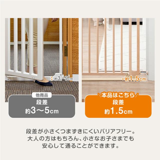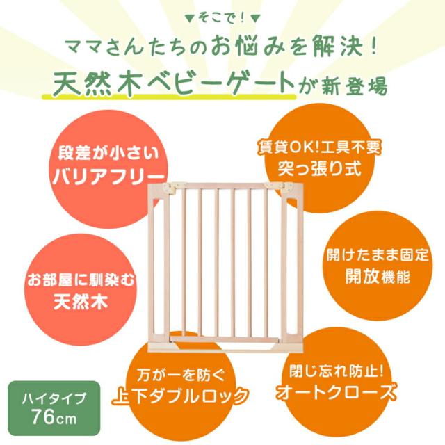 現役ママが考えた ベビーゲート つまづきにくい バリアフリー 幅74〜84cm 天然木 オートクローズ 突っ張り ハイタイプ ドア付き ベビーガード ベビー 赤ちゃん 子供 ゲート セーフティゲート フェンス 柵 転落 脱走 防止 木製