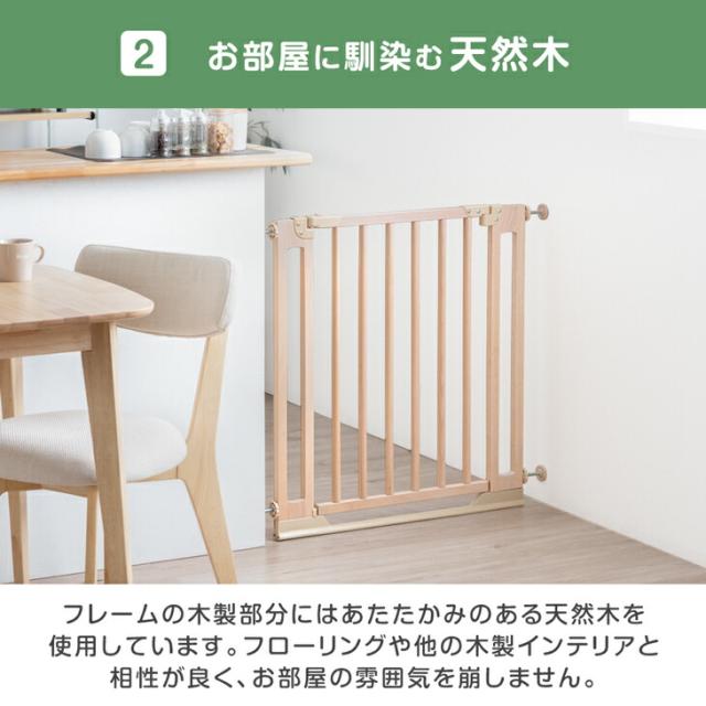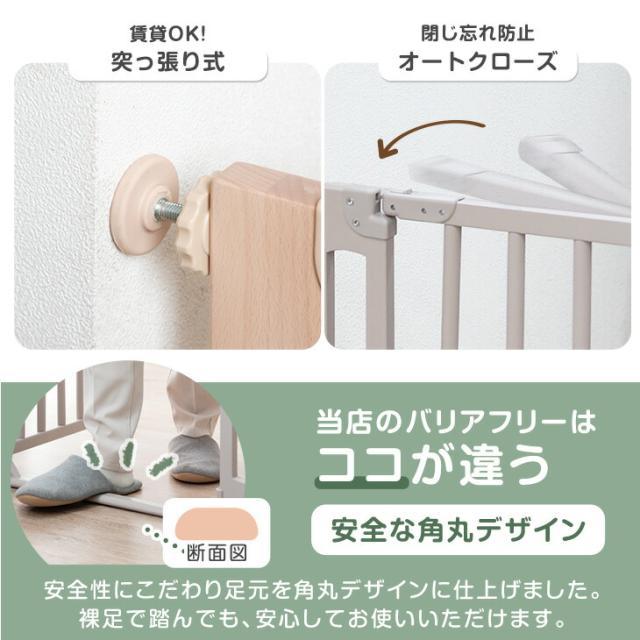 バリアフリー ベビーゲート 自動で閉まる オートロック 突っ張り式 木 ベビーフェンス ドア 扉 付き ドア付 ペット 飛び出し 防止 キッチン 台所 寝室 玄関 賃貸 階段 階段下