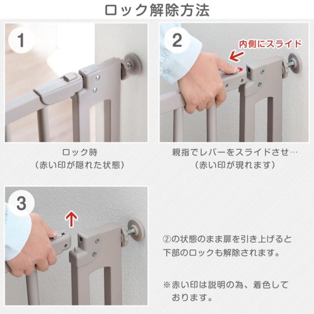 - 設置、操作ともに簡単でした。 階段に設置しました。 子供では開けることはできないので安心です。