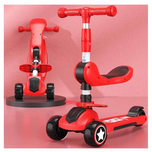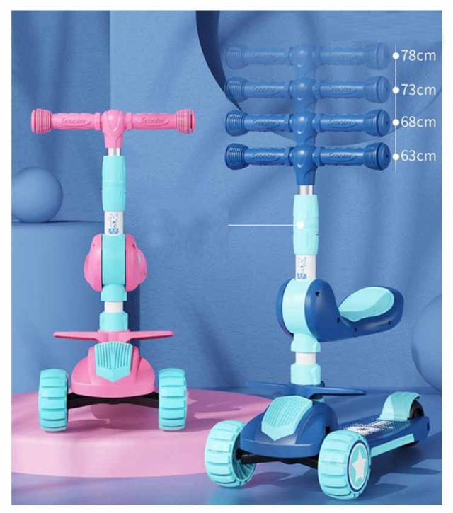 | 子供向けの座って乗れるキックボード 子供の身長により、63cm、68cm、73cm、78cmの4段階に調節できます。 走るときにピカピカ光るホイールを使用し、夜間でも目立つから万が一のときも目に入りやすくなっています。 後輪についているフットブレーキを片足で軽く踏むことで、スピードを簡単に調節でき、安全性とオシャレを両方も実現します。 ハンドルは人間工学に基づいた、T字型バーグリップがあるので、しっかりとした快適性と耐性があります、リーンステア機能付きで、体重をかける向きによって左右方向を変えられ、バランス感覚と運動神経を促進します。 場所を取らなくてコンパクトなので、玄関などの室内保管や車のトランクに置いても問題ないです。 シートの設計で、子供たちはペダルの上に座ることができます。 | |