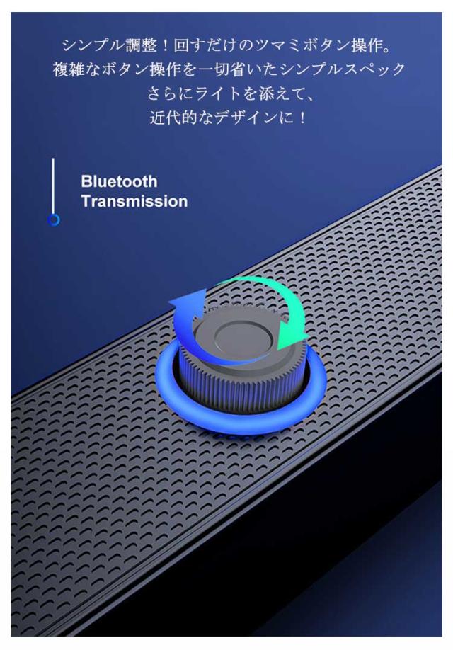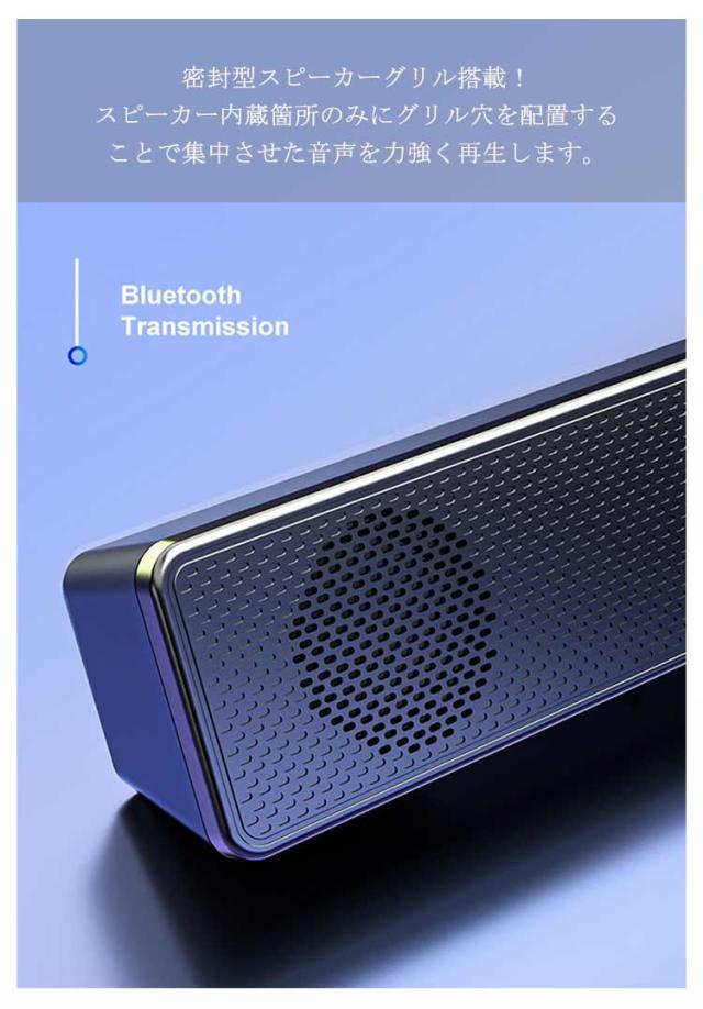 | コンパクトタイプのスピーカーをお探しの方におススメです!デスク周りを邪魔しないスリムでスタイリッシュなスピーカー。 キレのある重低音!外部の機器に干渉しない防磁型 高出力スピーカーユニット 4D立体音響効果 6W大迫力ダブルスピーカー 選ばれる高コスパ&高音質 ダブルスピーカー& ダブルスピーカーグリル 4つのスピーカーユニットで心に響くような濃厚な音質を再現! Bluetooth、ケーブルどちらも対応!安定性の高い最新50スマートチップ内蔵 純粋でクリアなサウンド&超省エネ仕様! テレビに繋げて映画館のような体験を!厳格なシステムチューニングにより全音域スピーカーを実現!体の芯に響くような、迫力のある音質を実現! ※別途、対応の変換アダプターをご用意ください 全音域360°サラウンド。どこに置いてもクリアな音に包まれる。屋内200m内で音楽を楽しめる。 シンプル調整!回すだけのツマミボタン操作。複雑なボタン操作を一切省いたシンプルスペック さらにライトを添えて、近代的なデザインに! 気軽に臨場感のある音質!ワイヤレスで迫力あるゲーム・音楽が楽しめる。 高性能・密封型スピーカー 軽快な高音質をキープ。密封型スピーカーグリル搭載!スピーカー内蔵箇所のみにグリル穴を配置することで集中させた音声を力強く再生します。 黄金比率・傾斜角15°スピーカー。インテリアとしても部屋に馴染みやすく、 さらに部屋全体に音を効率よく伝える理想的な角度。 放熱・防塵に長けたデザインと材質!本体と一体型にした、大判スピーカーグリル 密封設計に仕上げる事で、お手入れのしやすい防塵と長く使える放熱効果を持たせました。 【使用方法】 USB接続で給電し、3.5mmプラグを音声出力ポートに差し込むだけで簡単に使用できます。 ※使用デバイスによっては、デバイス側で音声出力の設定が必要な場合がございます。 ※Bluetooth接続方法 電源ケーブルを接続しますとお使いのデバイスに350Tと表示が出ますので接続してください。 ●Bluetooth接続中にイヤホンジャックに接続するとBluetoothが優先されますので音が出ない場合は一度接続し直してください。 USB給電方式(PCのUSBに接続しての使用が前提のため電源スイッチは付いておりません) | |