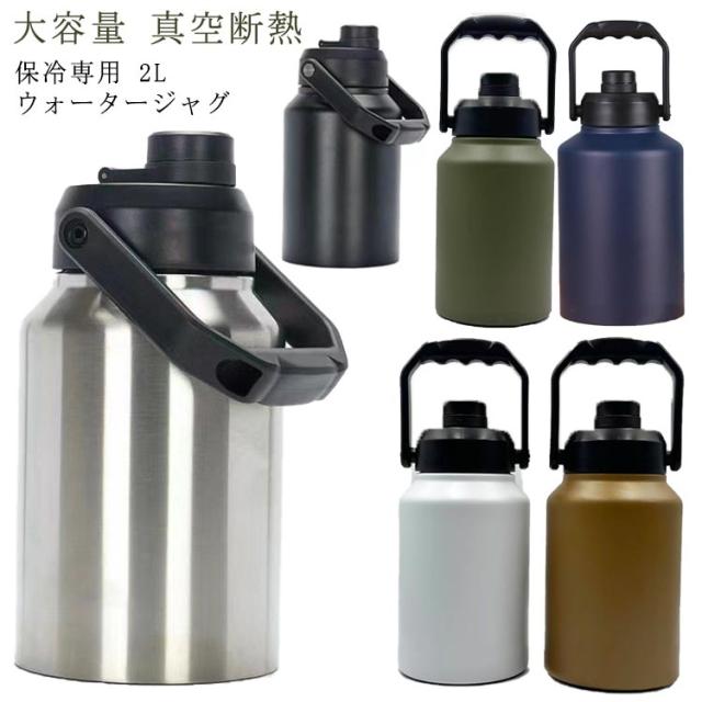 アイスコンテナ 2L ウォータージャグ 小型 キャンプ用 氷入れ 水筒 タンク 保冷 大容量 真空断熱 広口 アイスペール キャンプ 持ち運び BBQ アウトドア 屋外 冷たい飲み物 涼しい ステンレス製 水 氷水 運動会 花見 ギフト プレゼント 6色