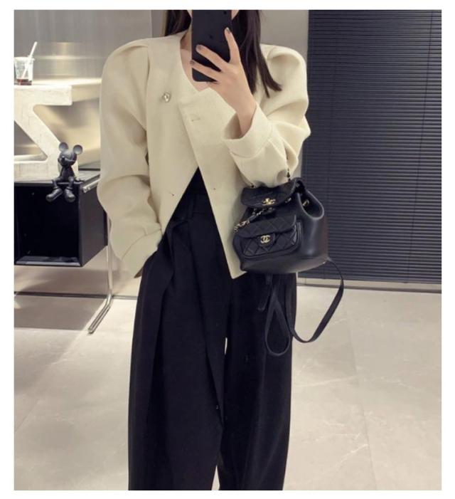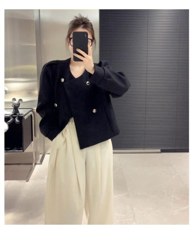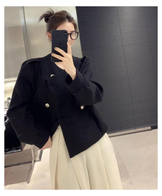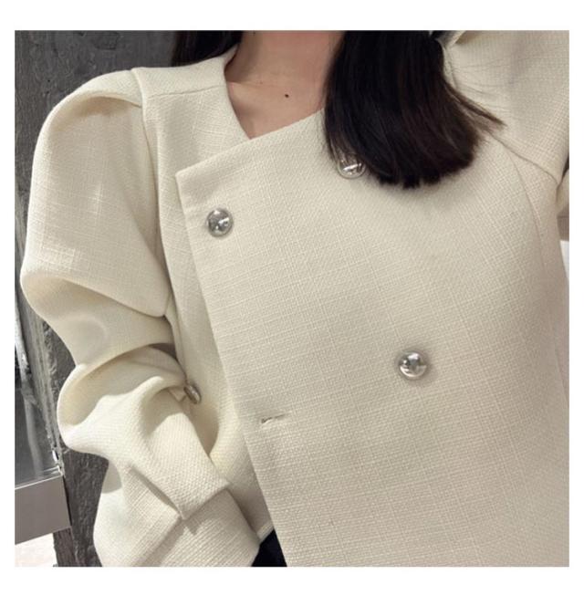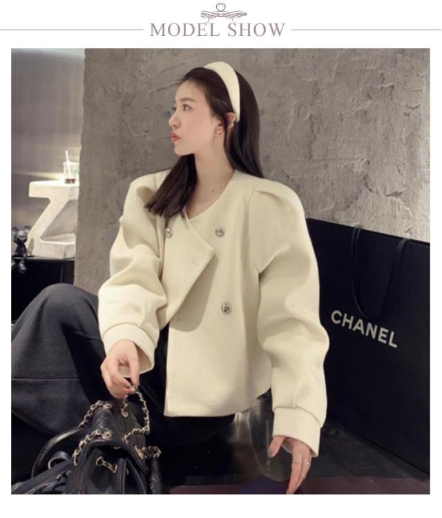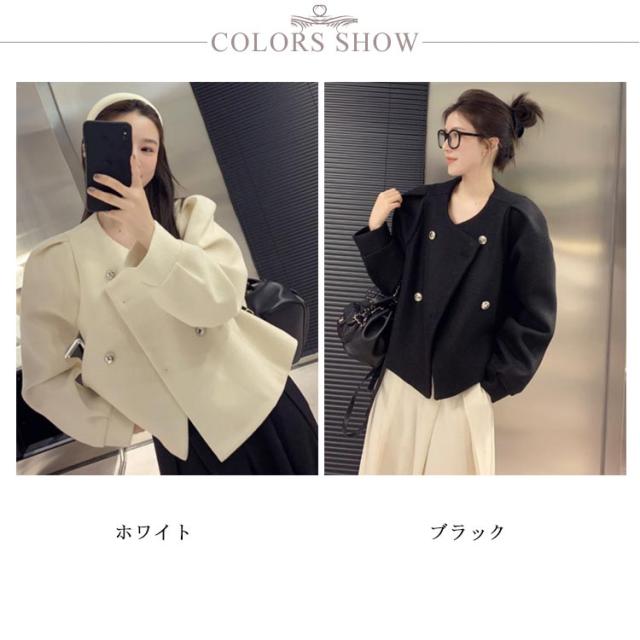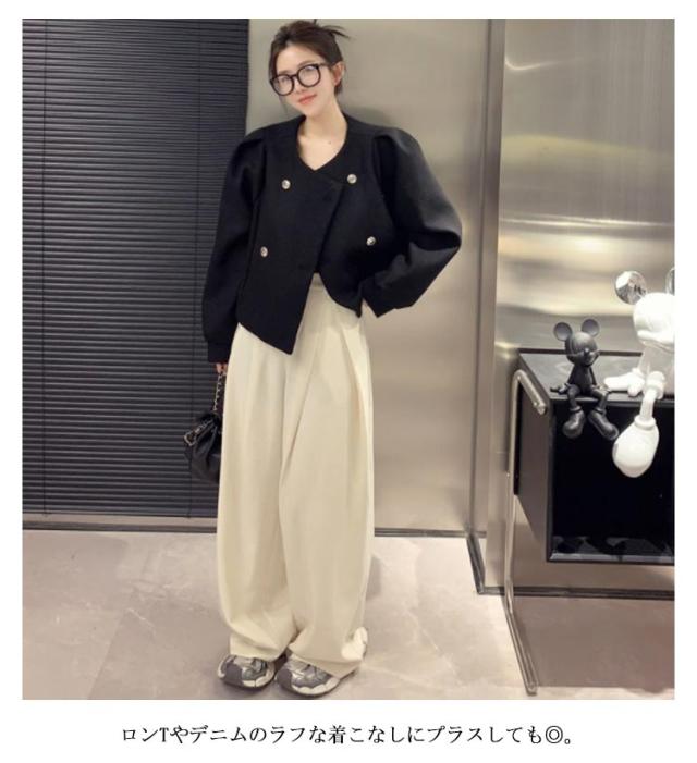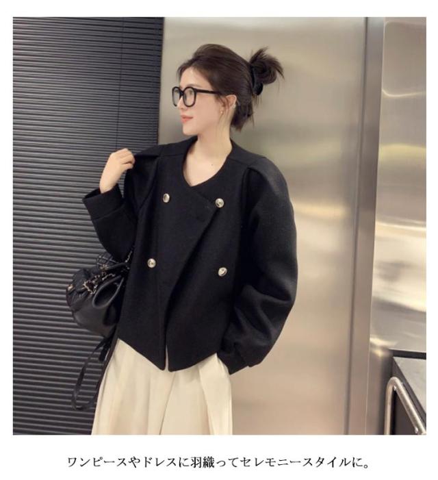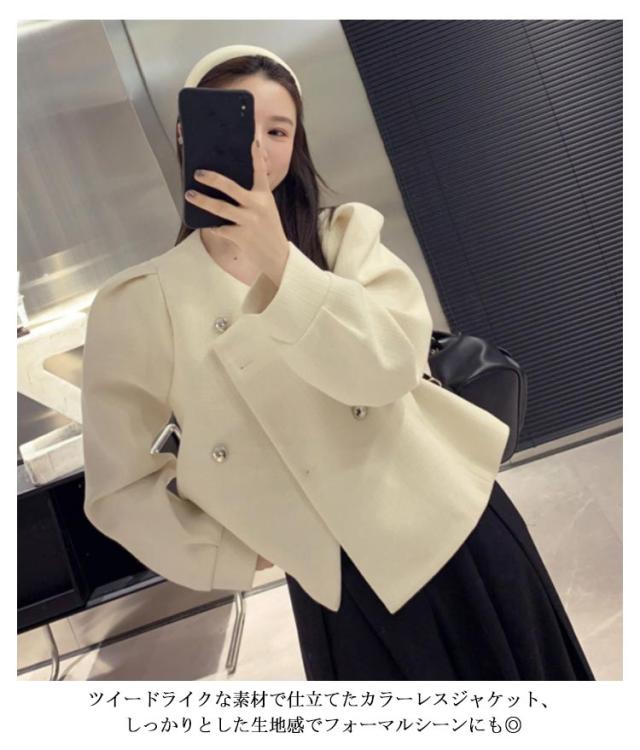 ノーカラージャケット ツイードライクジャケット ピーコート パフスリーブ レディース ショート丈 アウター ツイード ジャケット キレイめ コンパクト 上着 秋ジャケット 秋冬 春服 通勤 OL 韓国ファッション 20代30代40代