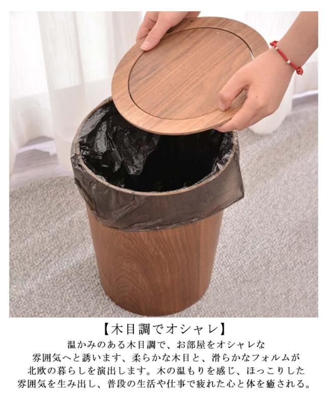 ゴミ箱 木製 ダストボックス 丸型 おしゃれ 室内 フタ付き スリム 円形 丸い ごみばこ ごみ箱 小さめ 木目 ナチュラル 天然木 北欧 おしゃれ ベージュ 寝室 リビング ダイニング 事務所 オフィス 円柱 ゴミ箱 木製