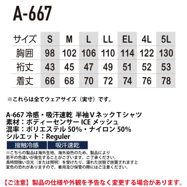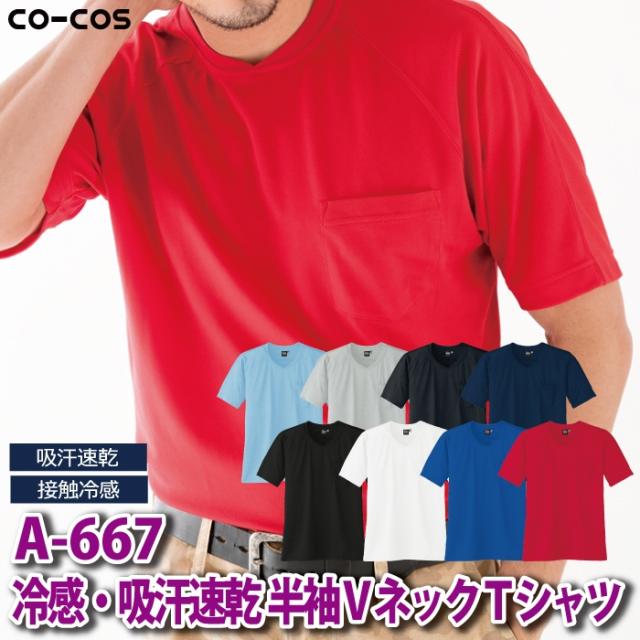 コーコス 作業服 春夏用 A-667 冷感吸汗速乾半袖VネックTシャツ 4L-5L