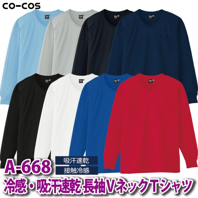 コーコス 作業服 春夏用 A-668 冷感吸汗速乾長袖VネックTシャツ EL