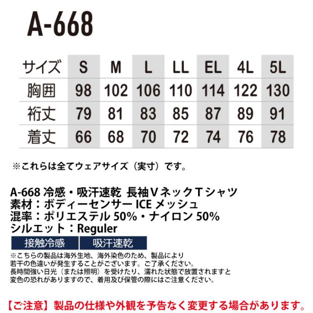 A-668 冷感吸汗速乾長袖VネックTシャツ