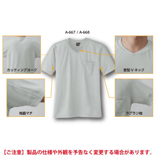 A-667 冷感吸汗速乾半袖VネックTシャツ