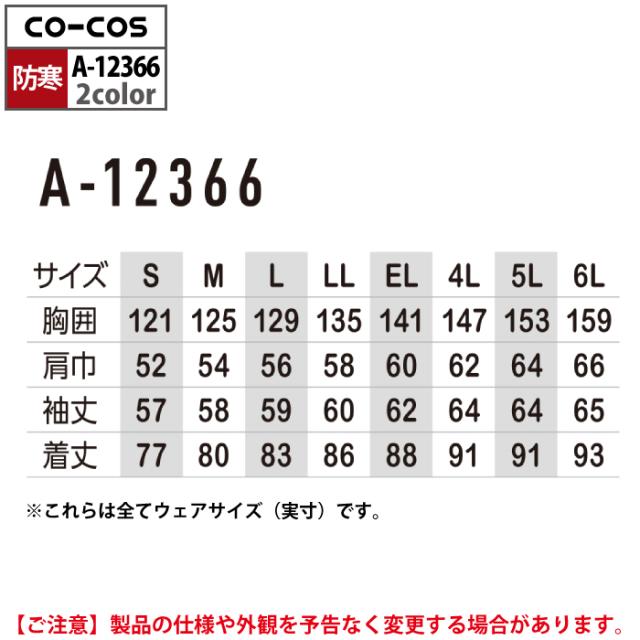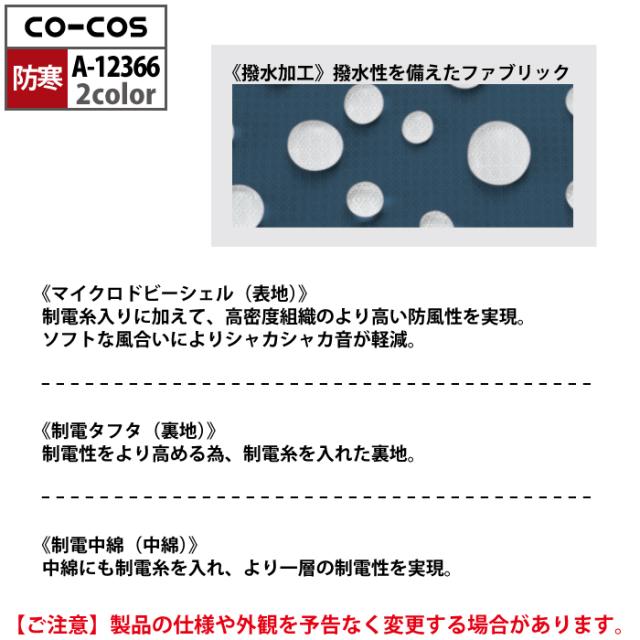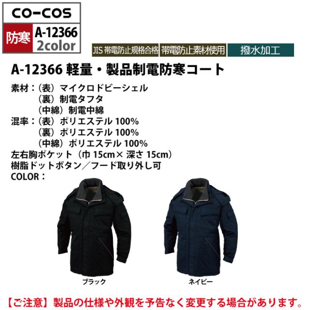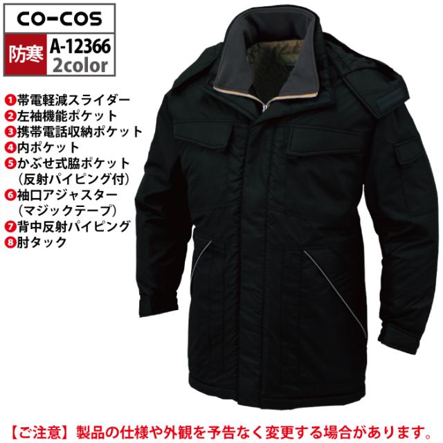 防寒着 秋冬用 コーコス A-12366 軽量製品制電防寒コート 4L-6L