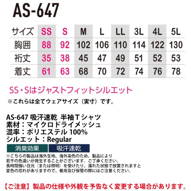 【AS-647 吸汗速乾半袖Tシャツ】