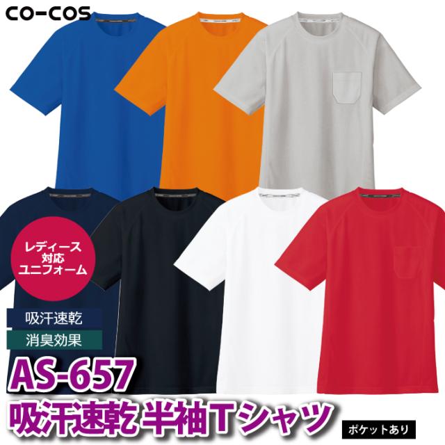 コーコス 作業服 春夏用 AS-657 吸汗速乾半袖Tシャツ ポケットあり 3L