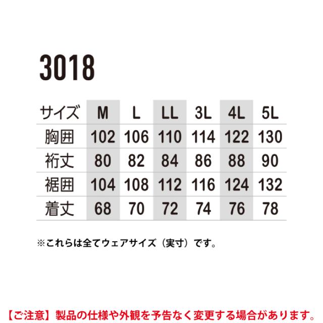 コーコス 作業服 春夏用 3018 長袖ハイネック M-LL