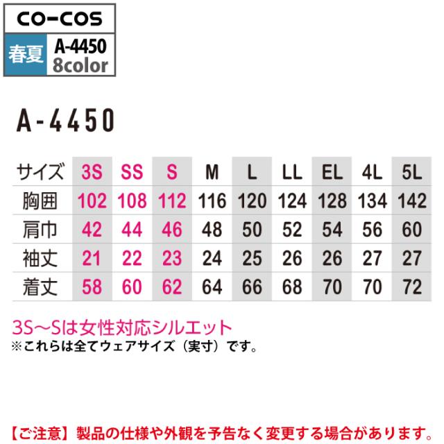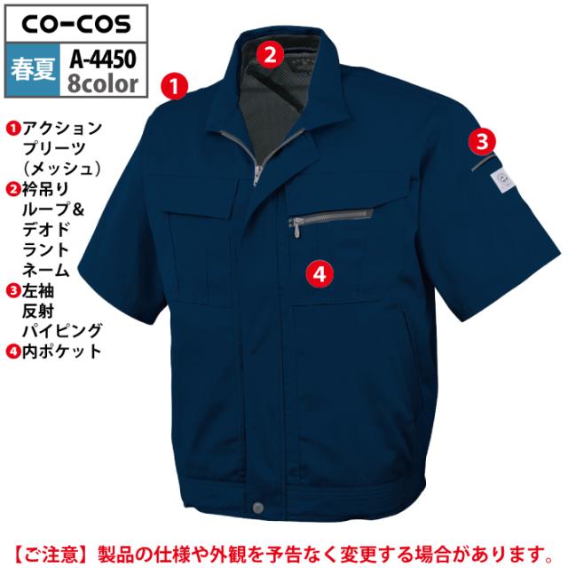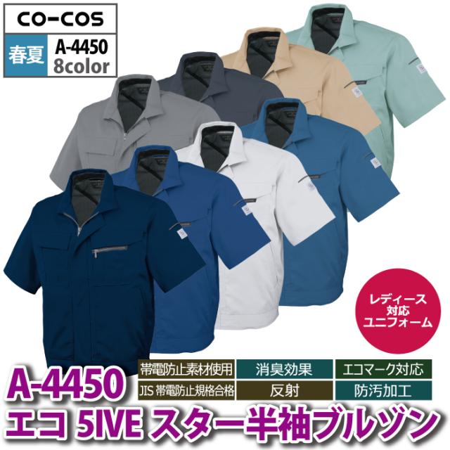 コーコス 作業服 春夏用 A-4450 エコ5IVEスター半袖ブルゾン 4L-5L