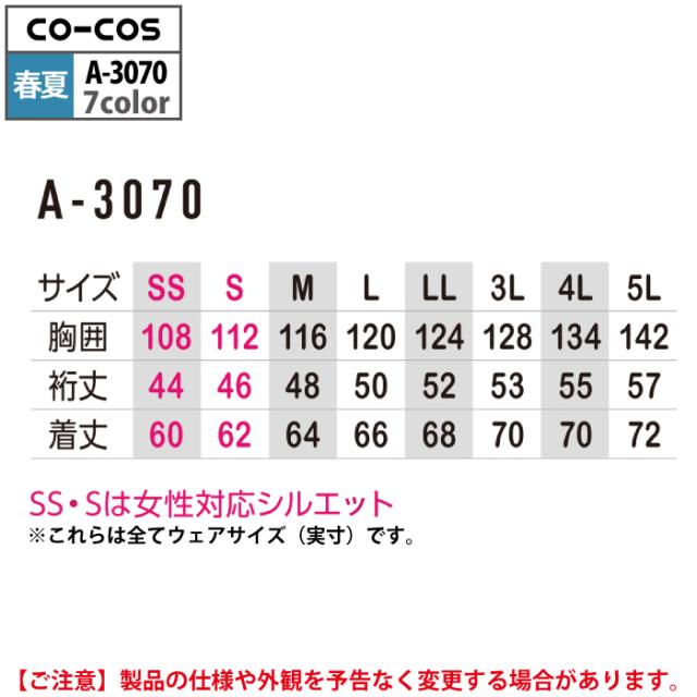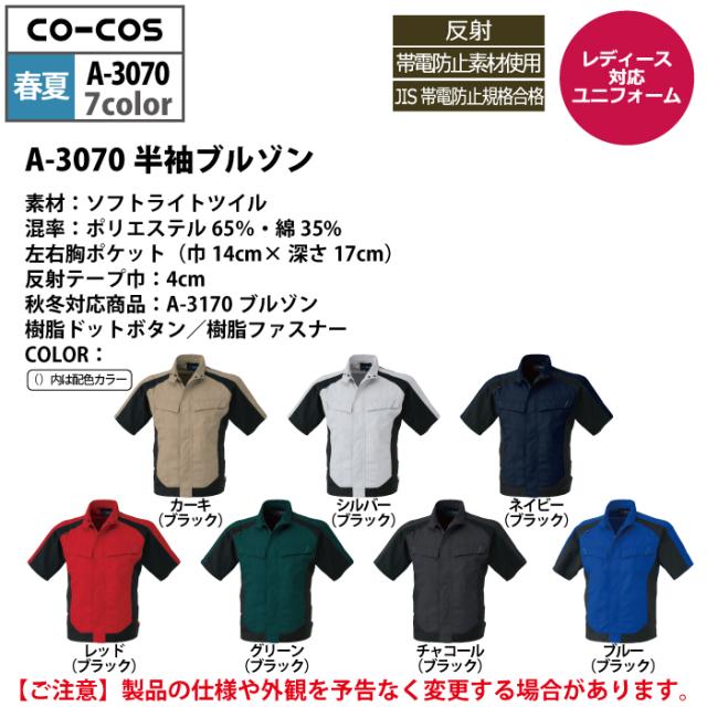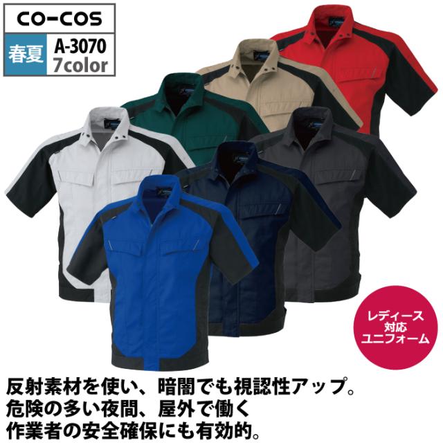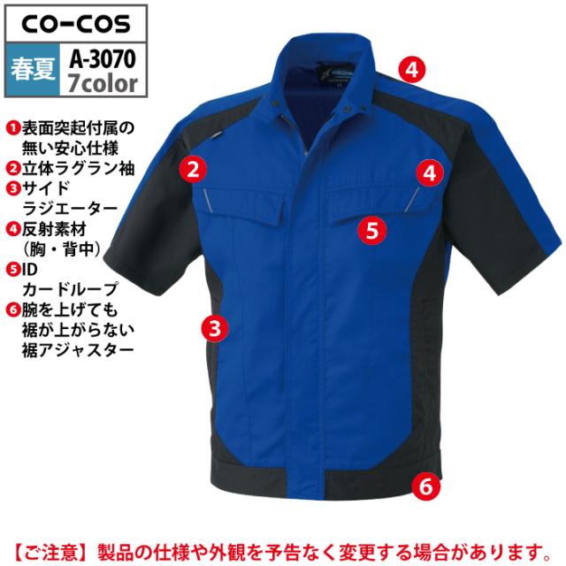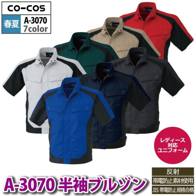 コーコス 作業服 春夏用 A-3070 半袖ブルゾン 4L-5L