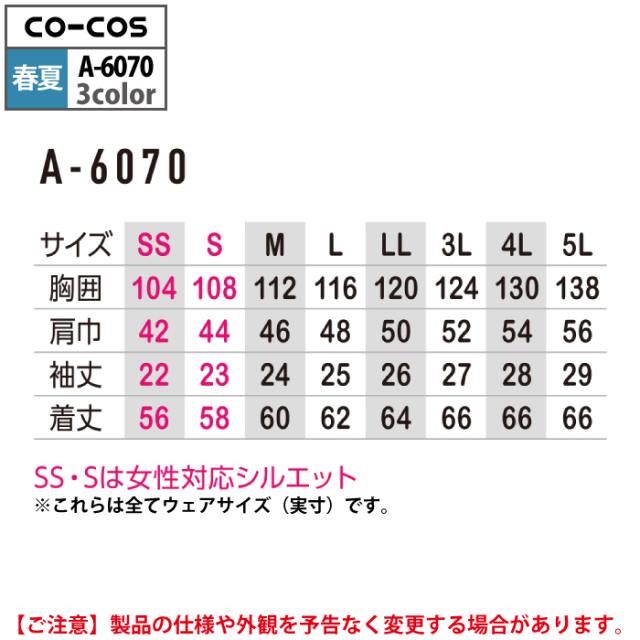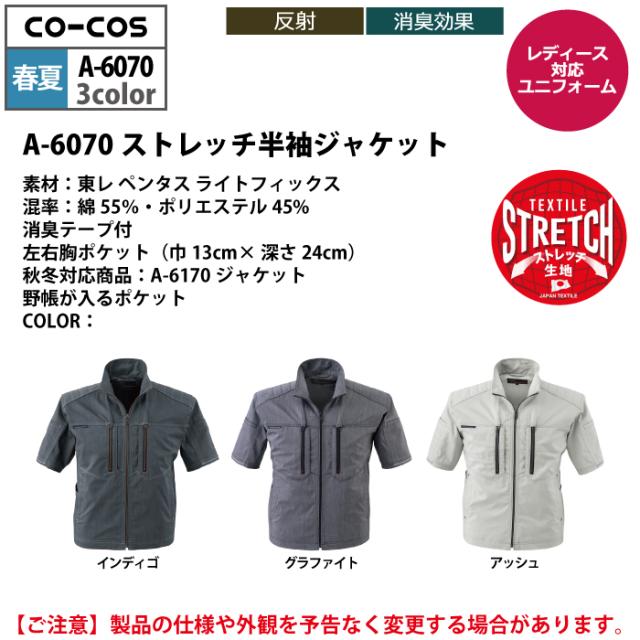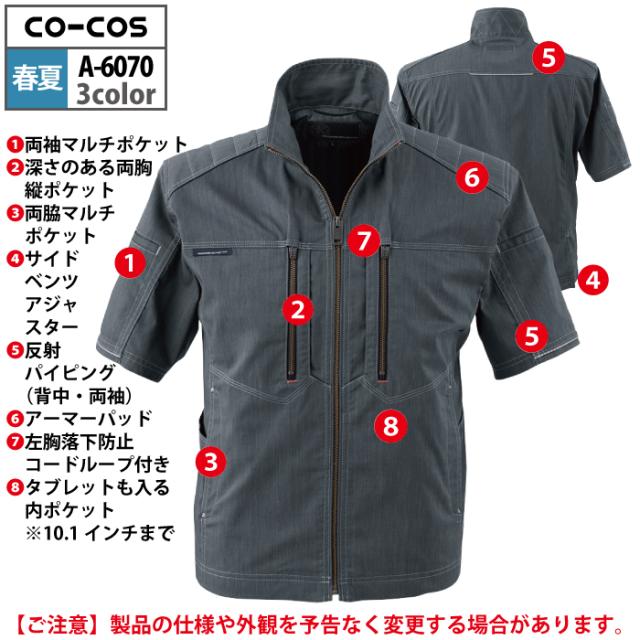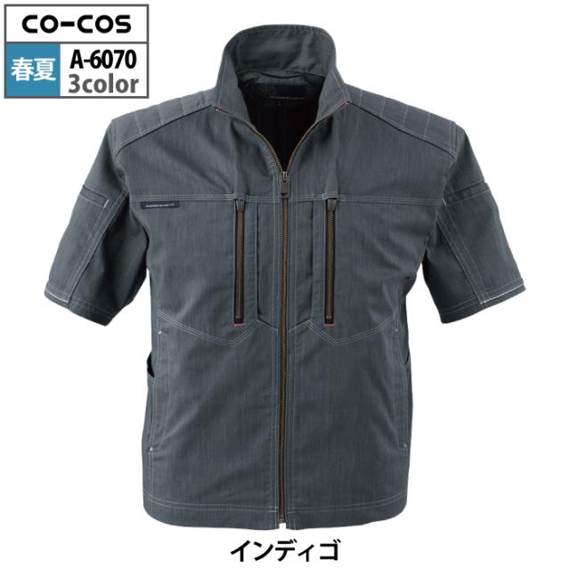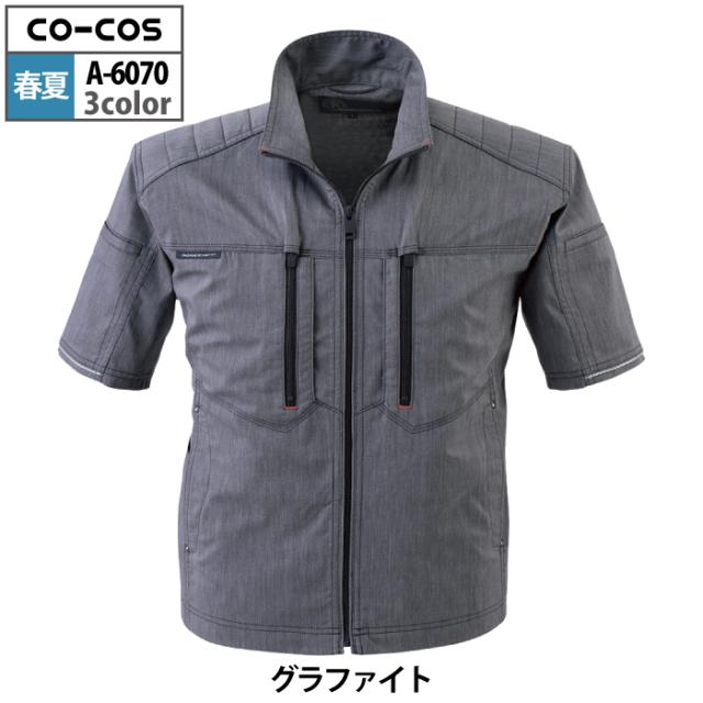 コーコス 作業服 春夏用 A-6070 ストレッチ半袖ジャケット 4L-5L