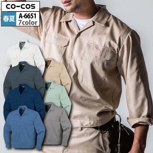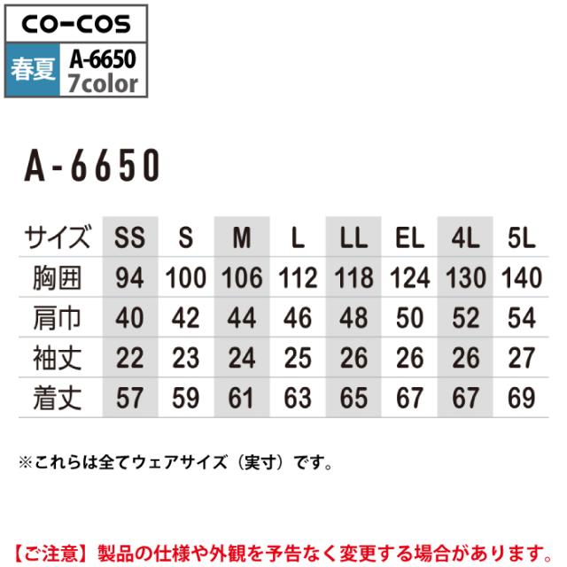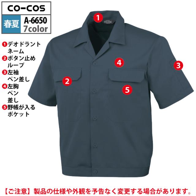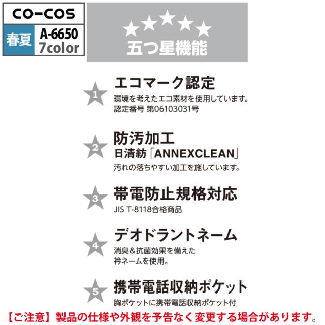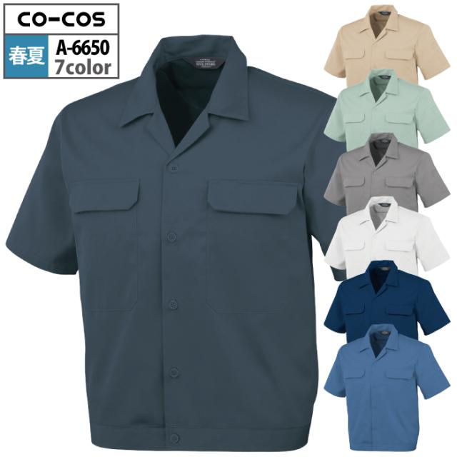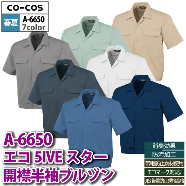コーコス 作業服 春夏用 A-6650 エコ5IVEスター開襟半袖ブルゾン 4L-5L