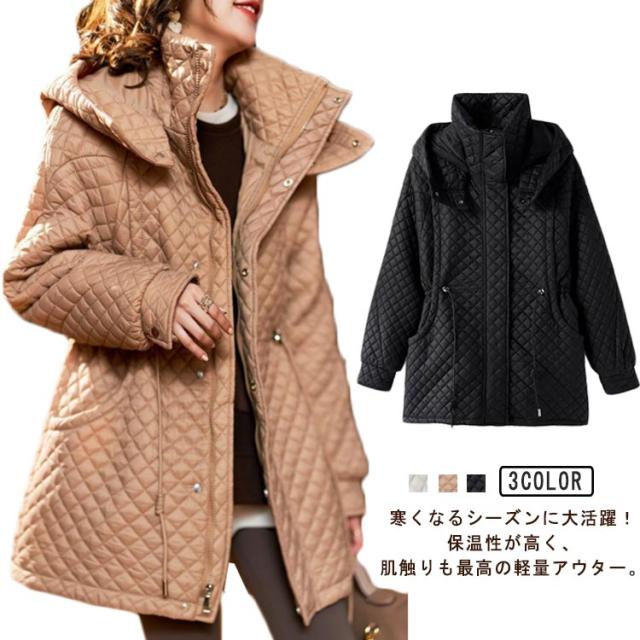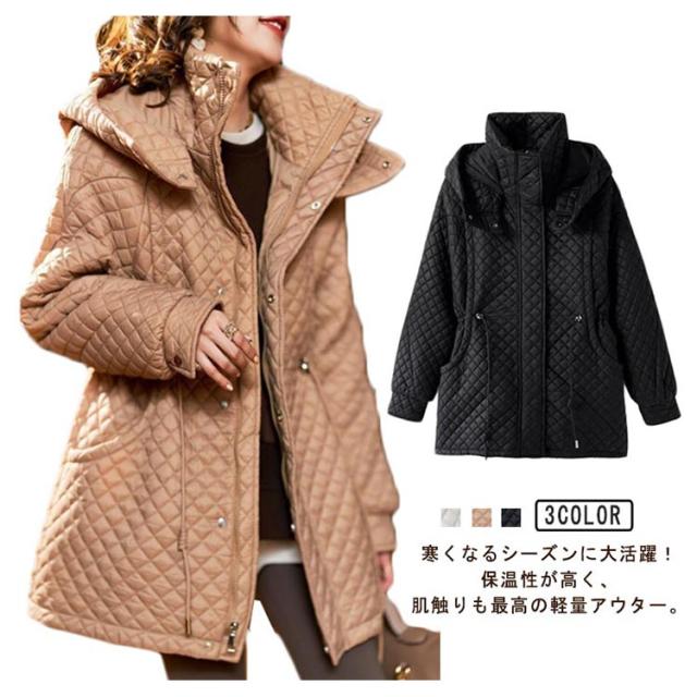 キルティングコート レディース 秋 冬 キルティング コート ジャケット アウター フード付き 中綿 ロングコート キルトジャケット 大きいサイズ ミセス 秋 冬 大きいサイズ 上品 防寒 細見え おしゃれ 大人可愛い 暖かい