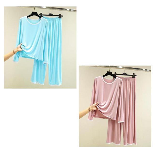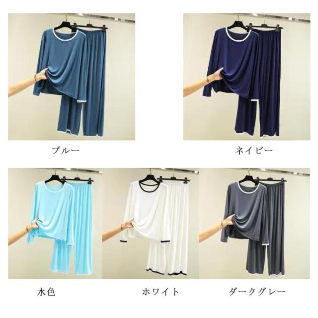パジャマ レディース ルームウェア レディース 長袖 長ズボン 無地 大きいサイズ 上下セット 部屋着 シンプル ナイトウエア 薄手 春 夏 秋 長袖 ロングパンツ 入院 着替え ウエストゴム ロングTシャツ カットソー プルオー